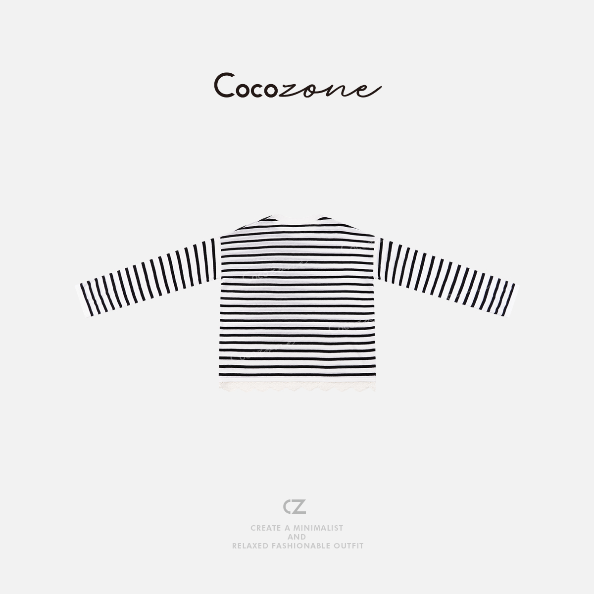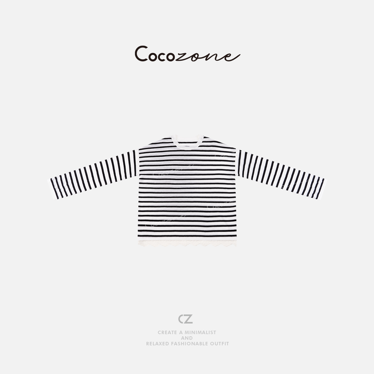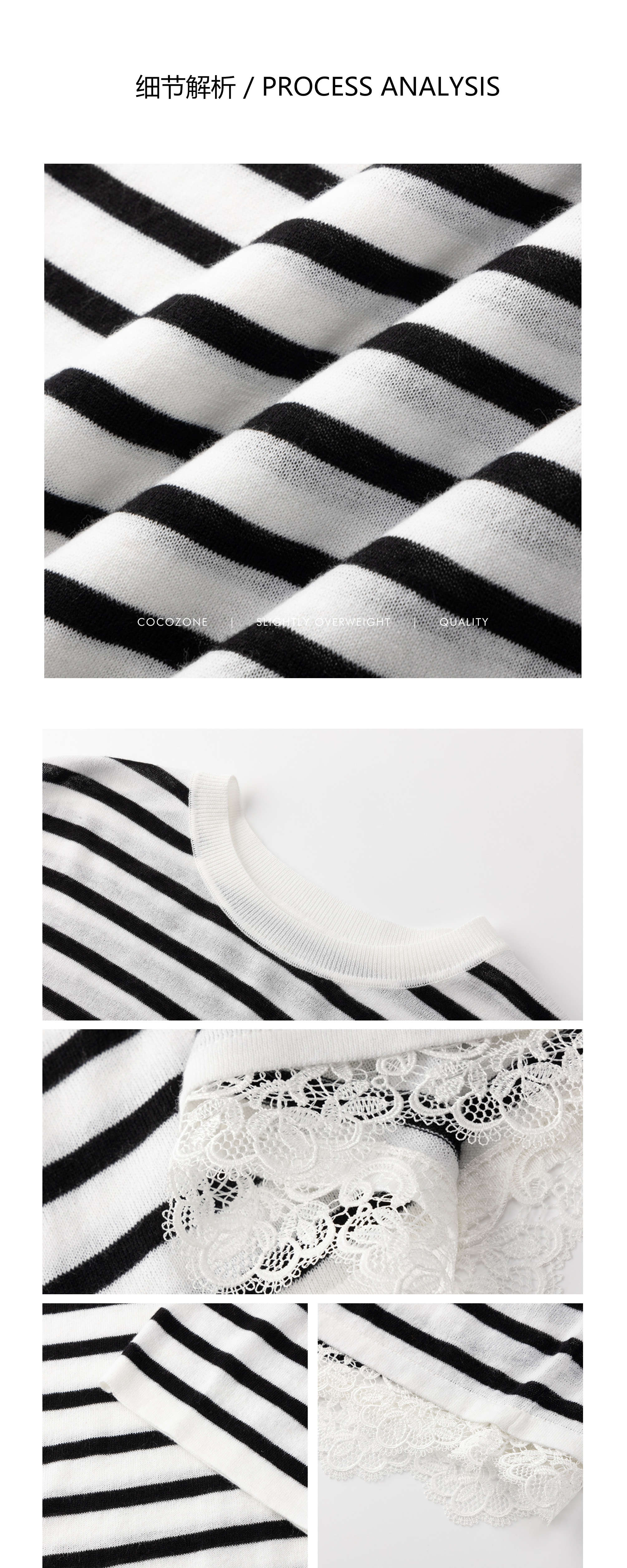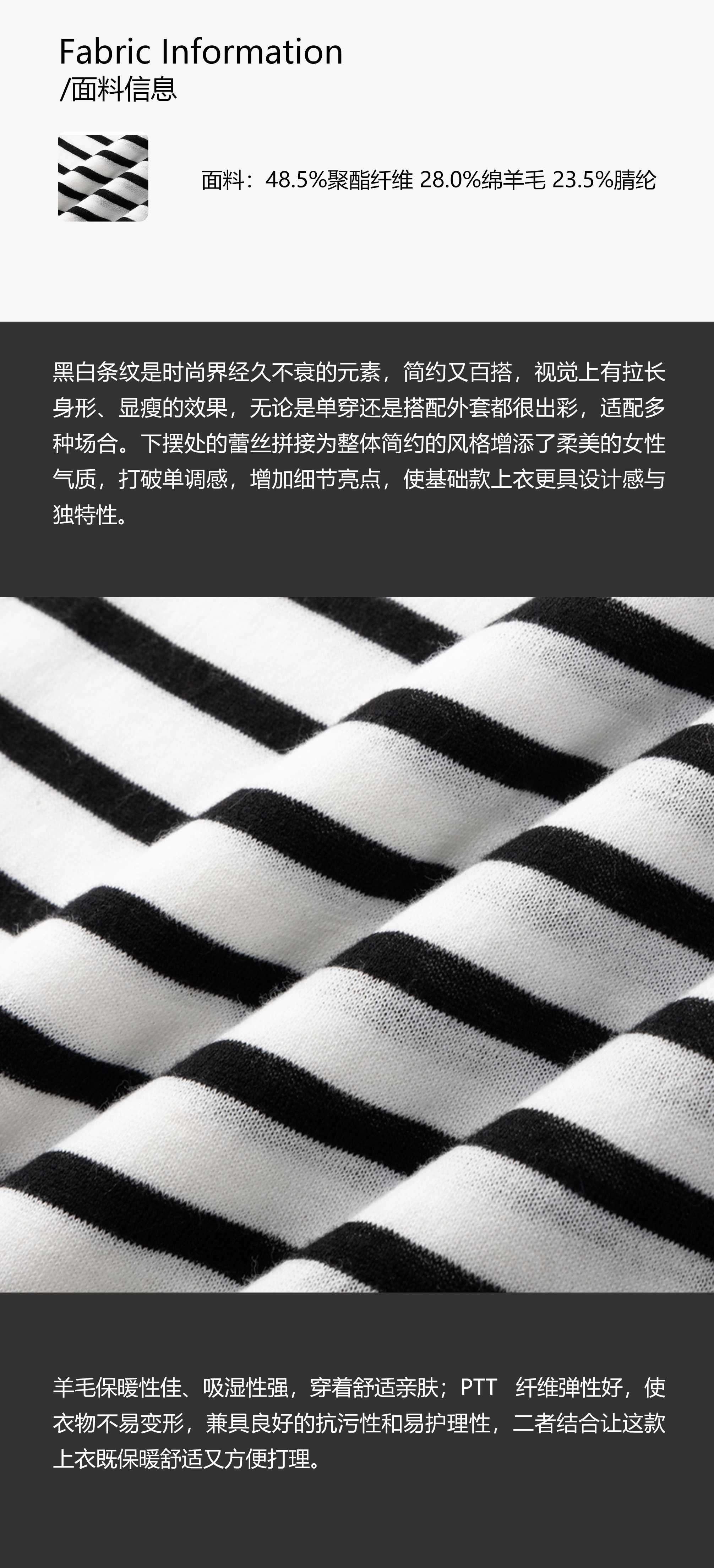 COCO ZONE 刘一一 黑白条纹下摆蕾丝花边圆领毛针织衫ACD2A0558