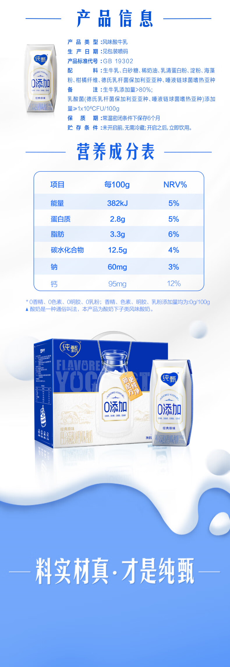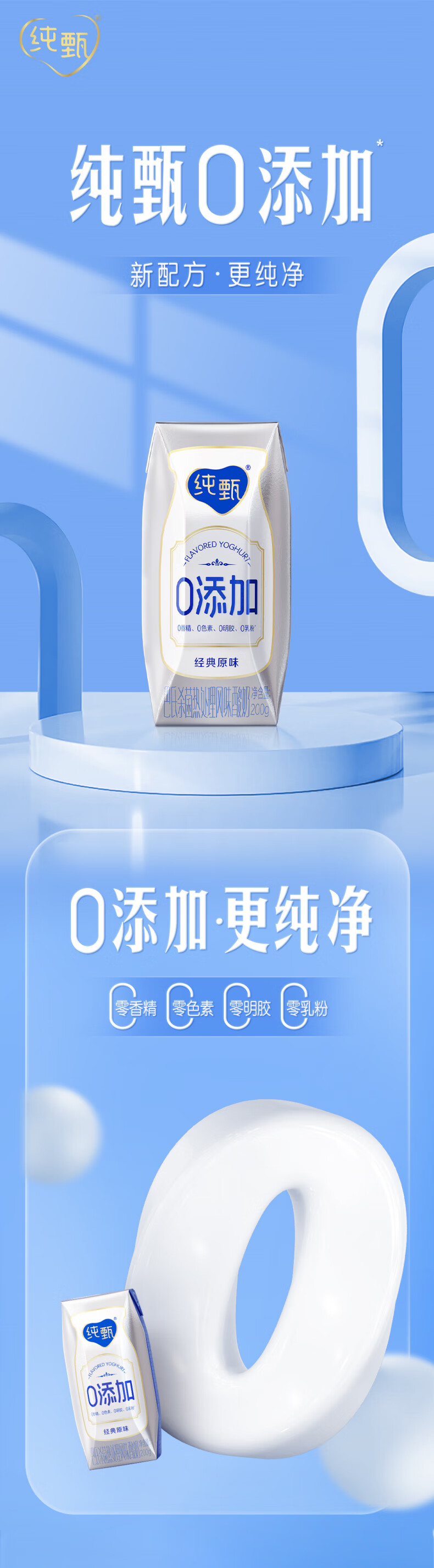 纯甄0添加巴氏杀菌热处理原味风味酸奶利乐钻200g×10包(加长箱)