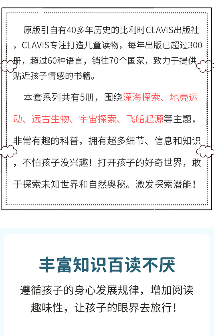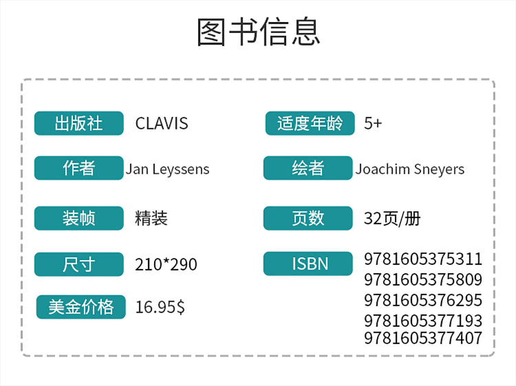 Clavis 是一家总部位于比利时,拥有46年儿童和青少年书籍出版经验的出版集团。跻身欧洲地区“顶流绘本”出版行列,Clavis 一词取自拉丁语,意为“金钥匙”。金钥匙启动智慧之门,帮助孩子梦想成真!