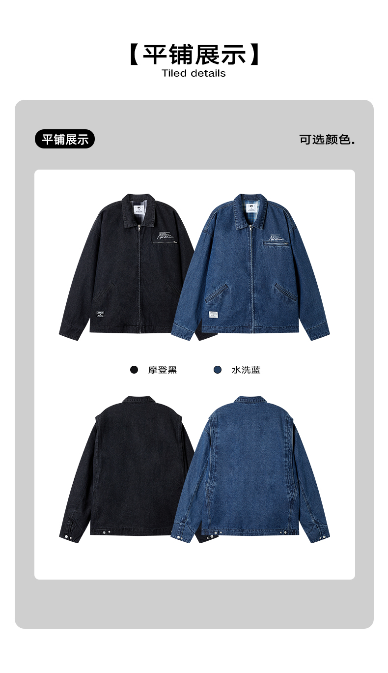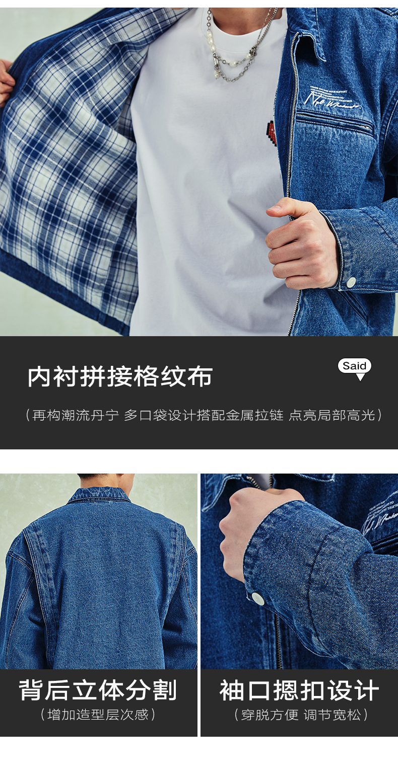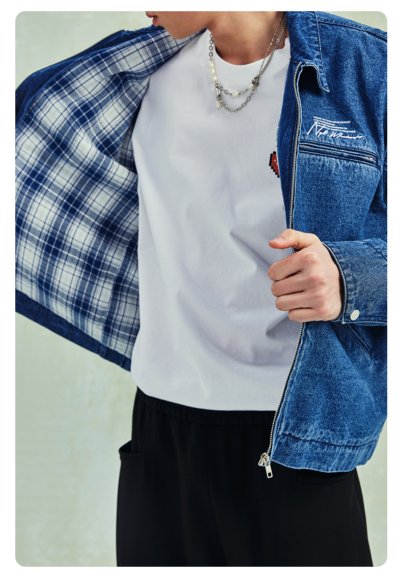 NPC潮牌宽松底特律版型格纹内衬翻领牛仔外套男潮流NP41DC55