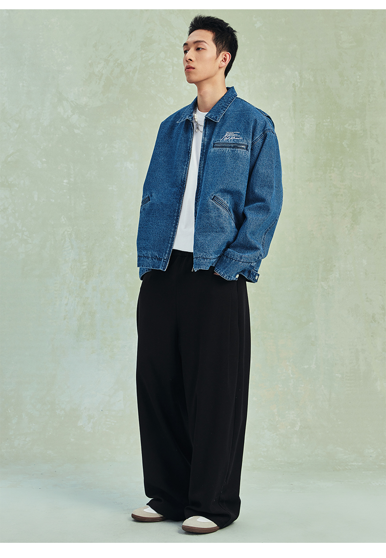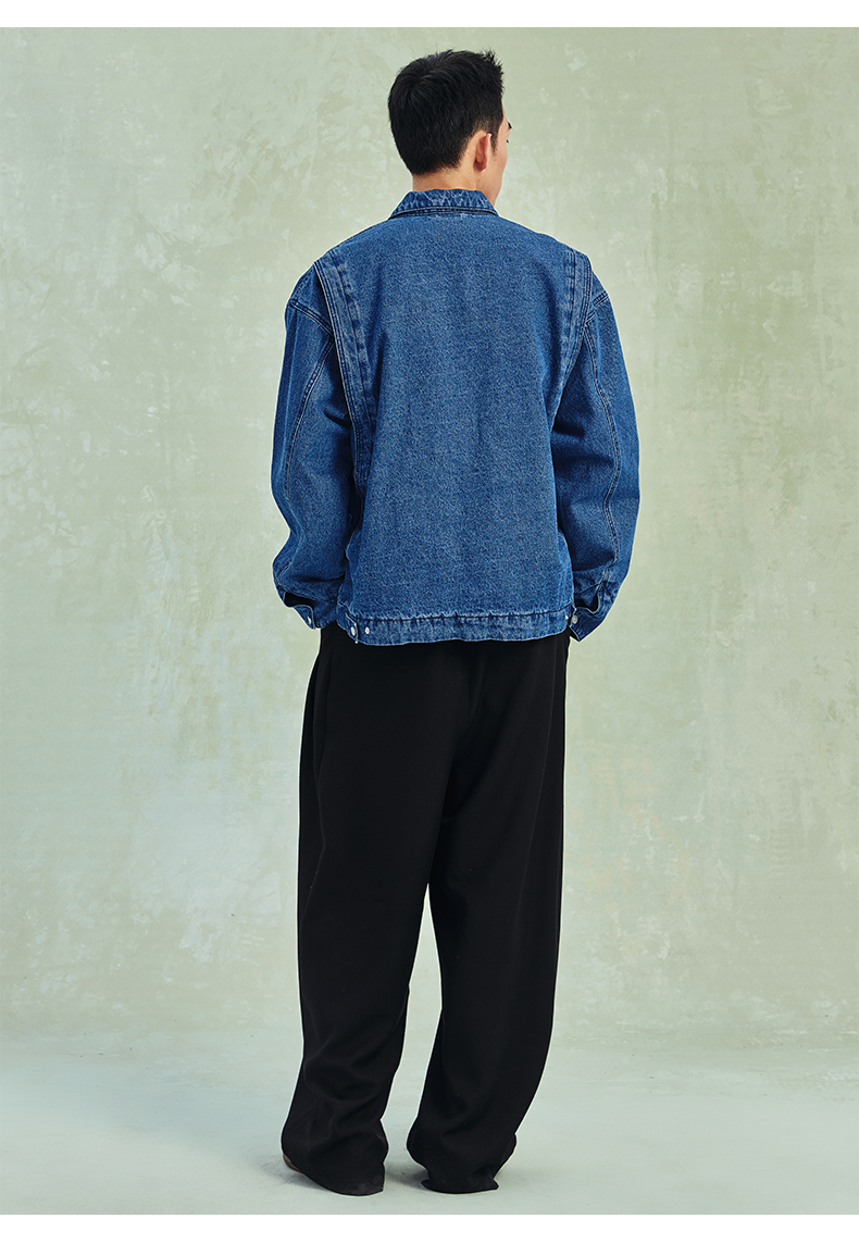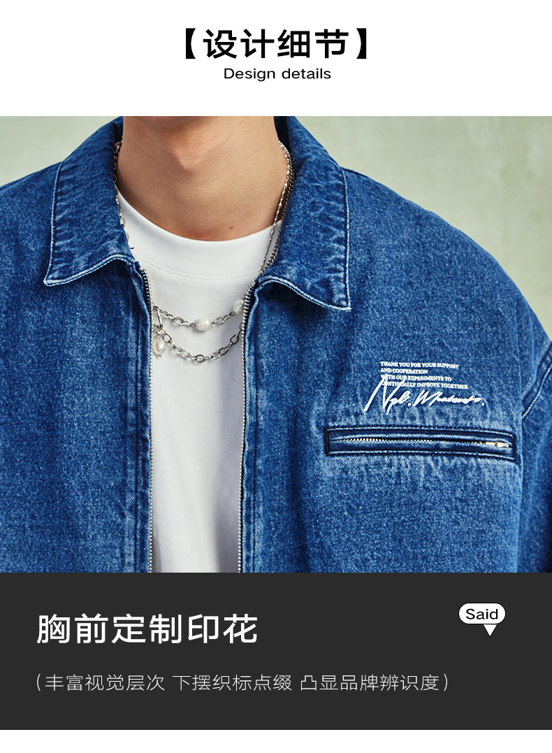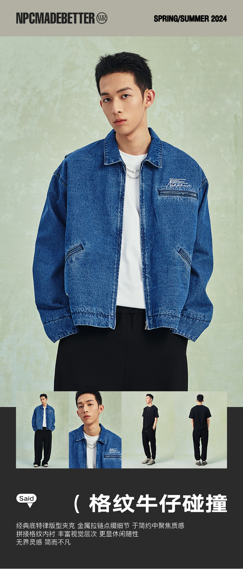 NPC潮牌宽松底特律版型格纹内衬翻领牛仔外套男潮流NP41DC55