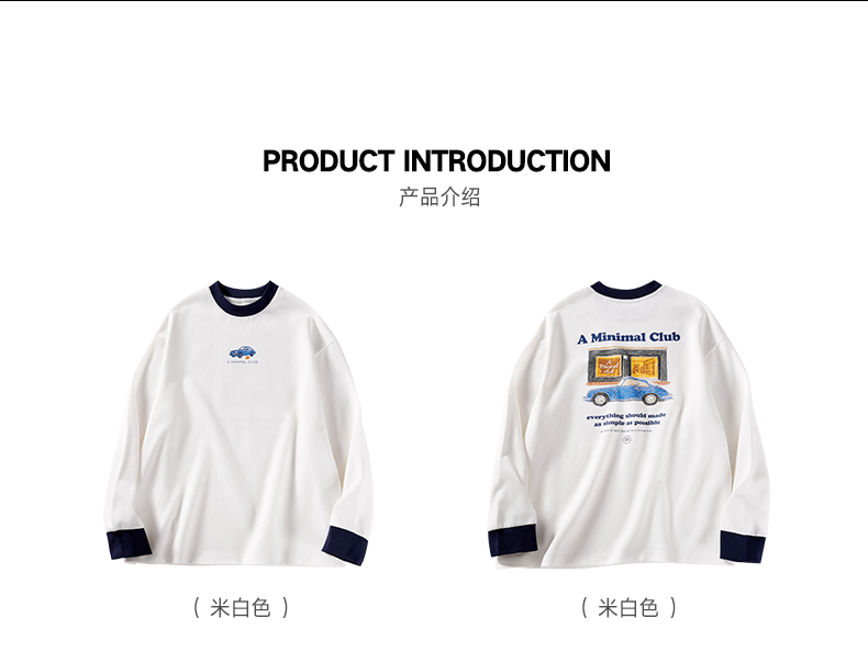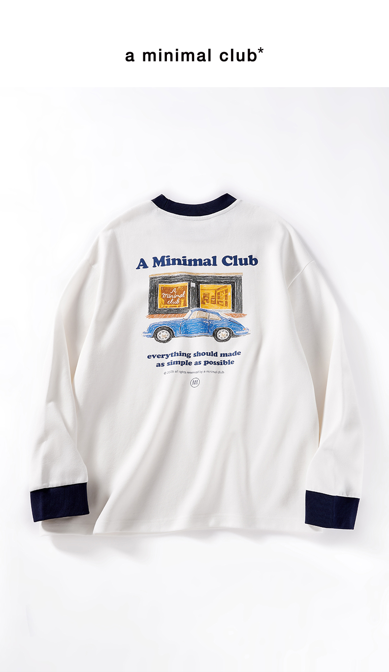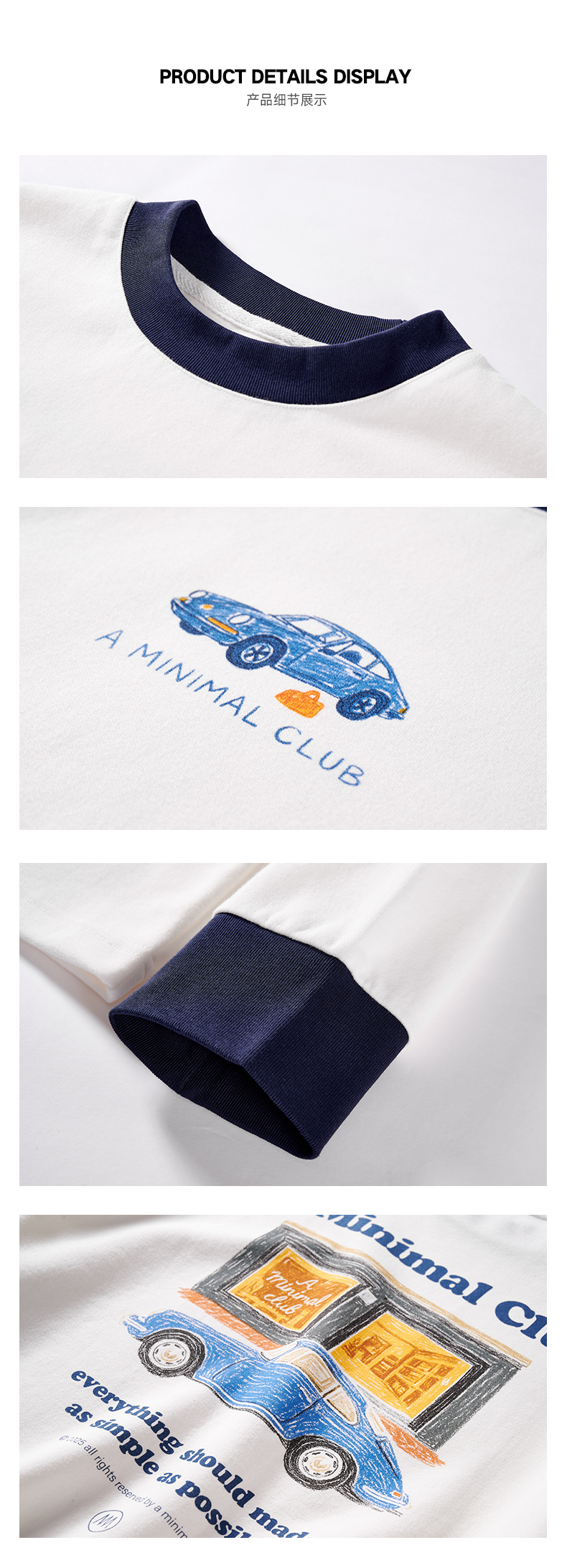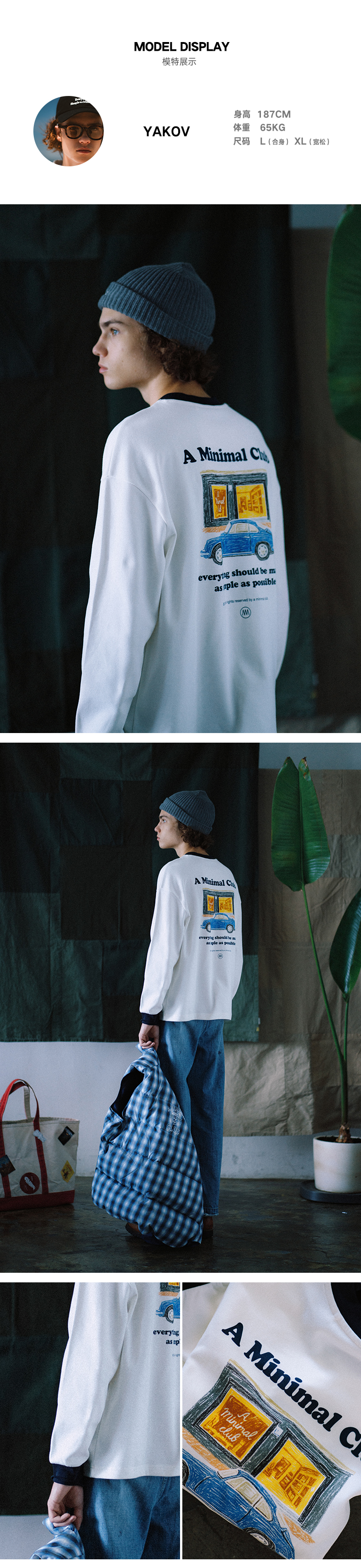 a minimal club重磅领袖口撞色趣味印花长袖T恤休闲百搭AM58TL02