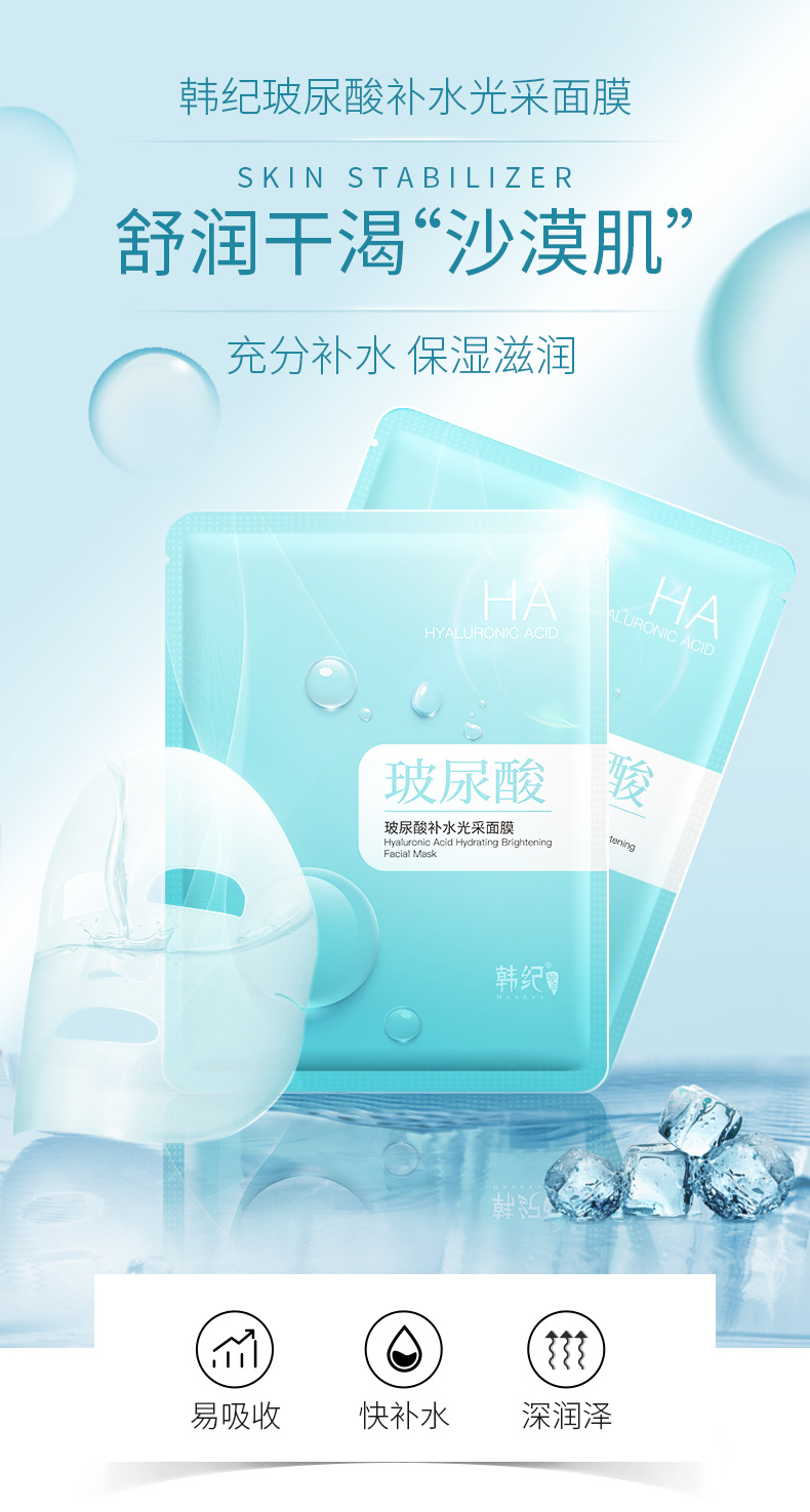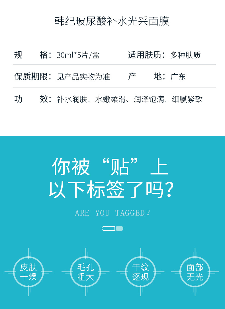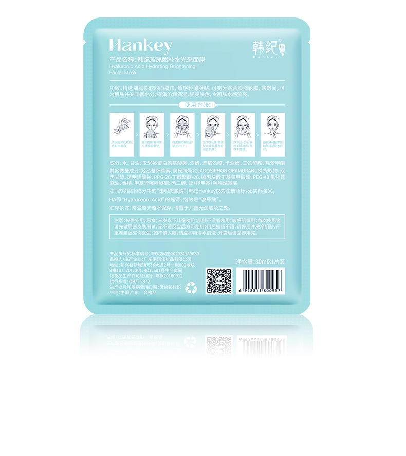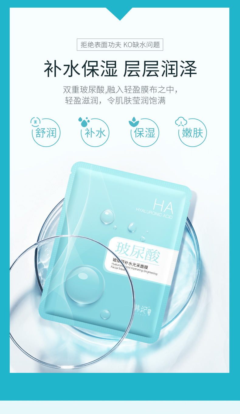 韩纪玻尿酸面膜30ml 补水亮采面膜嫩滑保湿熬夜滋润网红面膜护肤品1片