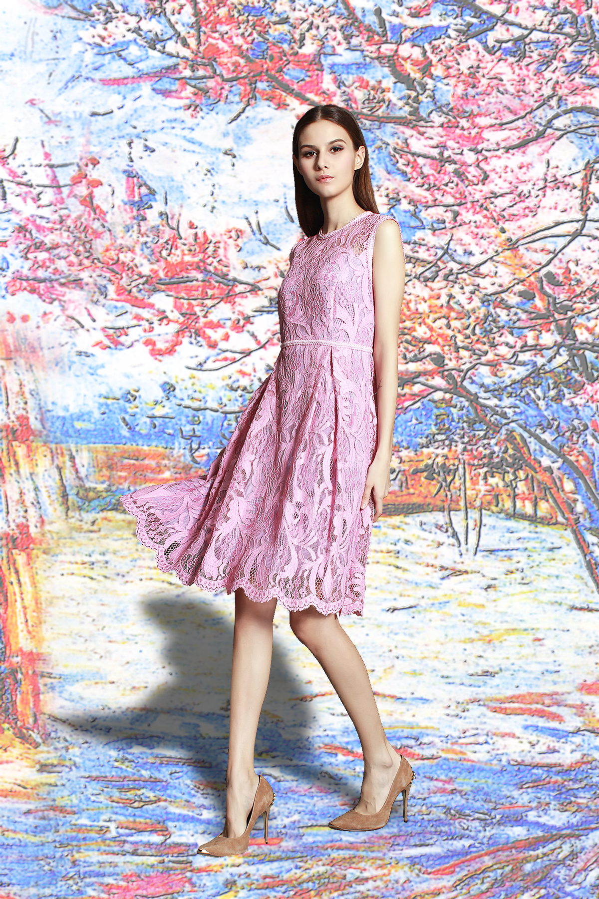 精致花边点缀,收腰A摆简洁廓形,让穿着者散发出难以抵挡的女王气质,高贵典雅。