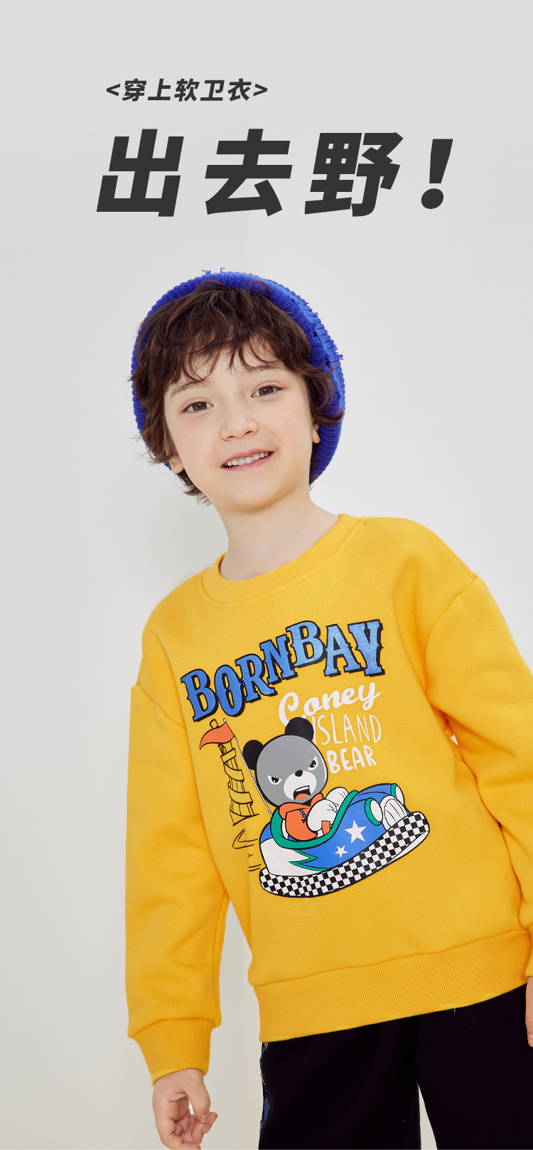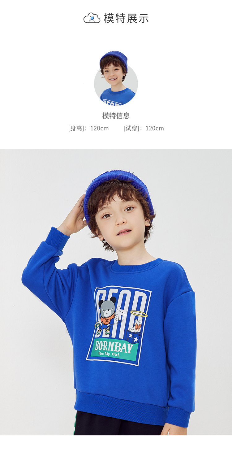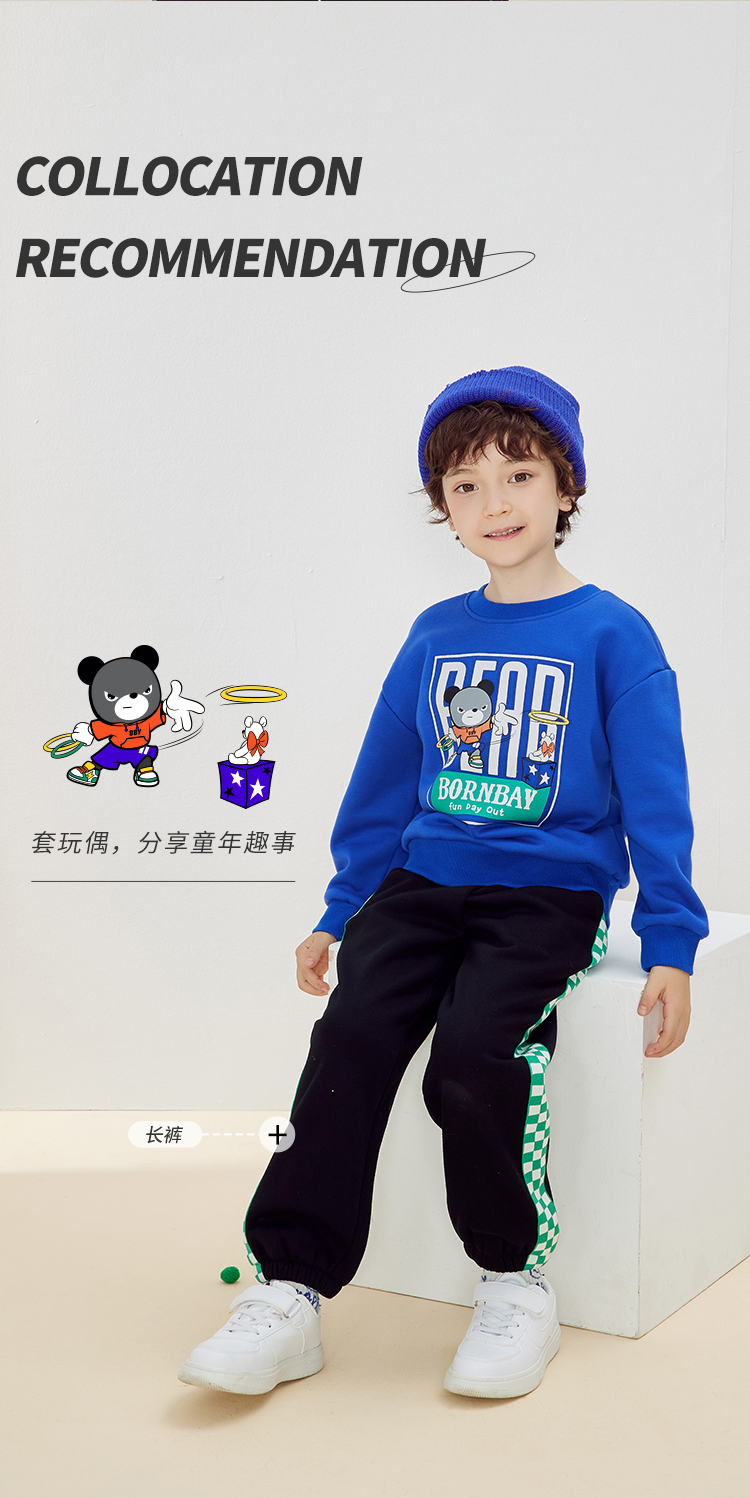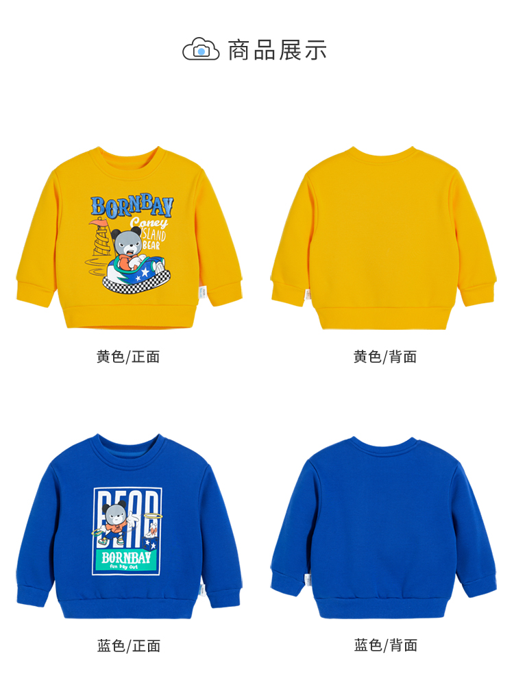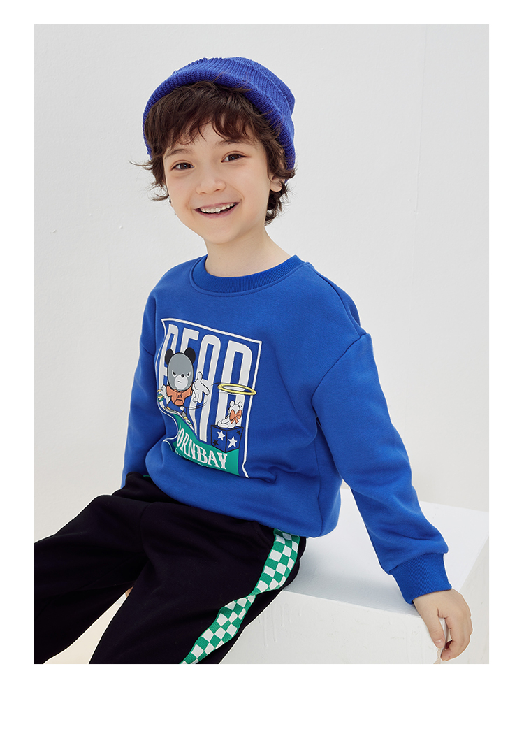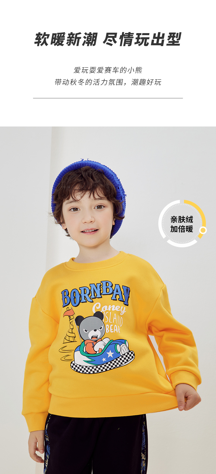贝贝怡童装 春秋男童时尚卫衣舒适加绒保暖上衣223S3079