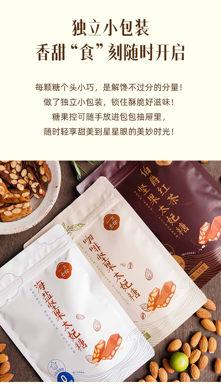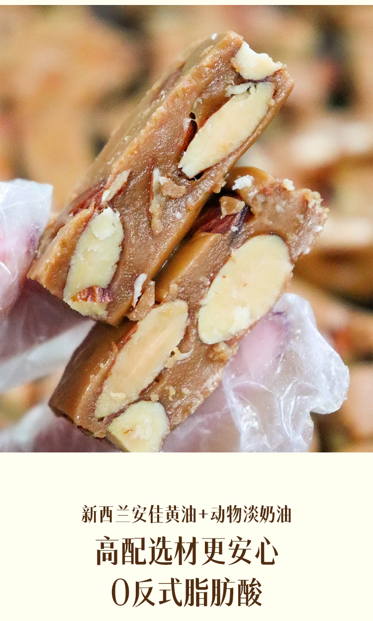 一方云拾的太妃糖,选用的是新西兰安佳黄油加上动物淡奶油,0反式脂肪酸,大大颗的扁桃仁,也拒绝边角料!还有优质的咖啡粉和海盐及红茶粉,奶香更是醇厚浓郁!一包是56g,不会很多,能很好的控制自己的食量!