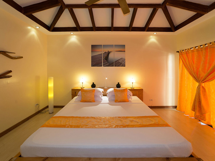 34平米大小,用最原始的材料建筑而成,其中4间有一张大床+2床,另外2间有1张大床+1床,距离餐厅5-10分钟。