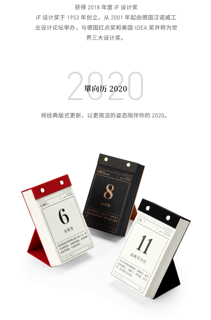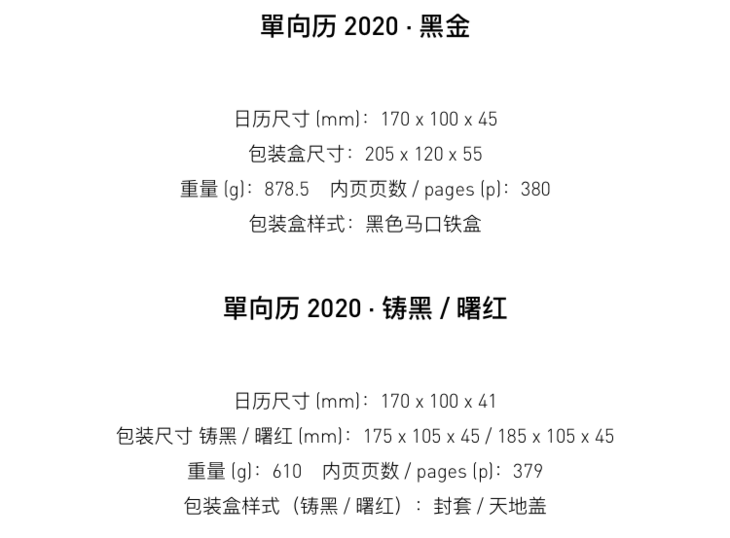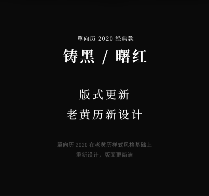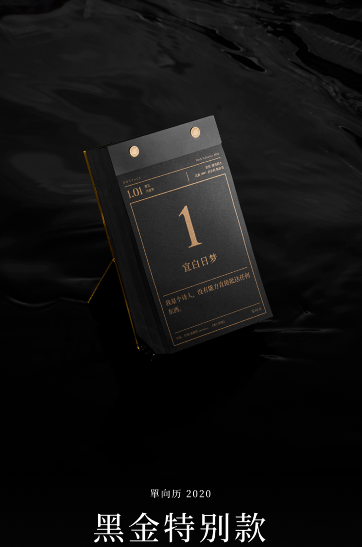 单向空间 OWSPACE 单向历2020 日历 铸黑曙红黑金 多款可选