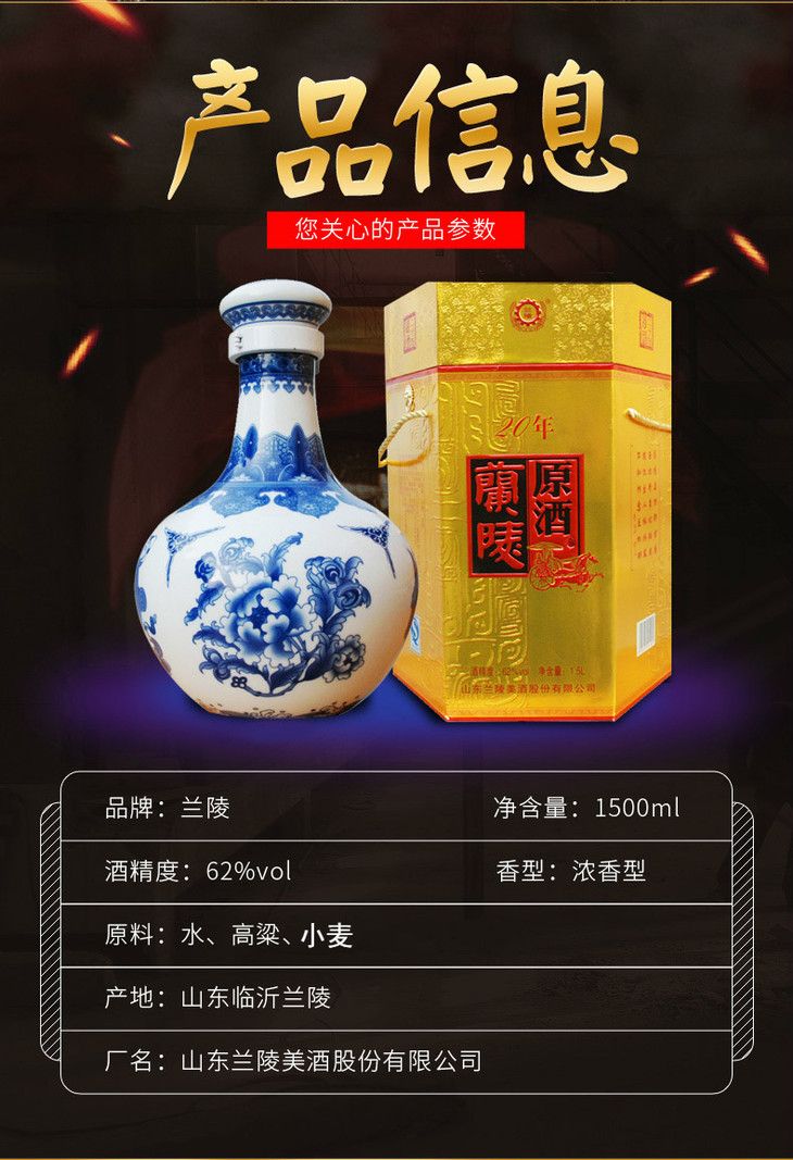 【兰陵美酒】二十年原酒62度兰陵1500ml浓香型白酒纯粮食送礼盒名酒高度
