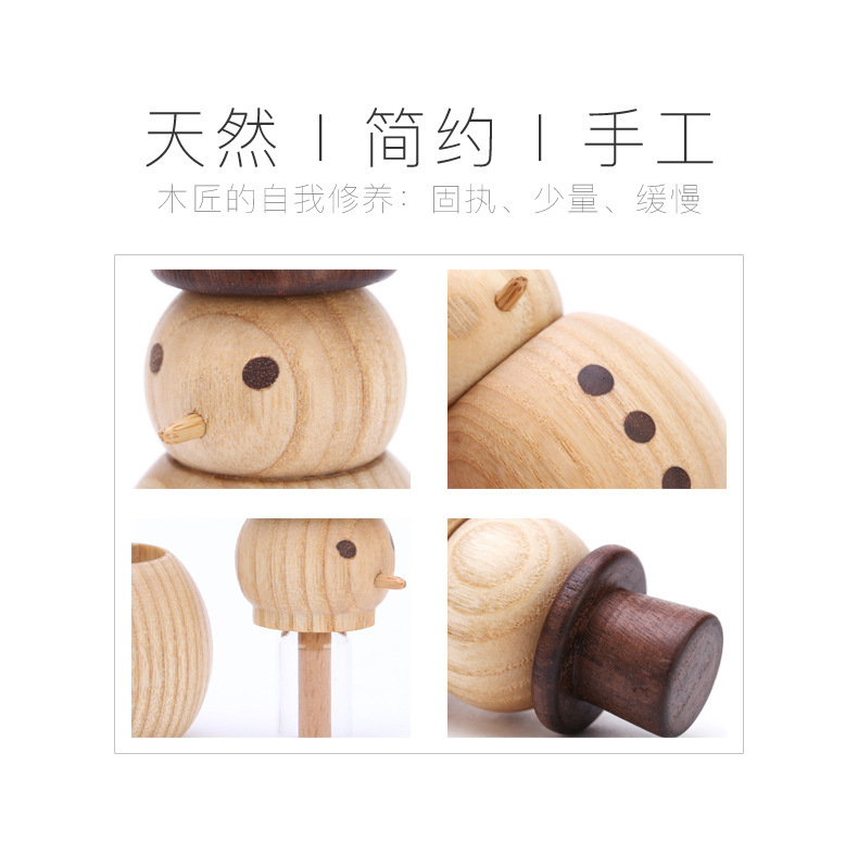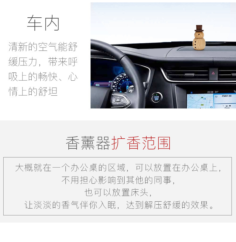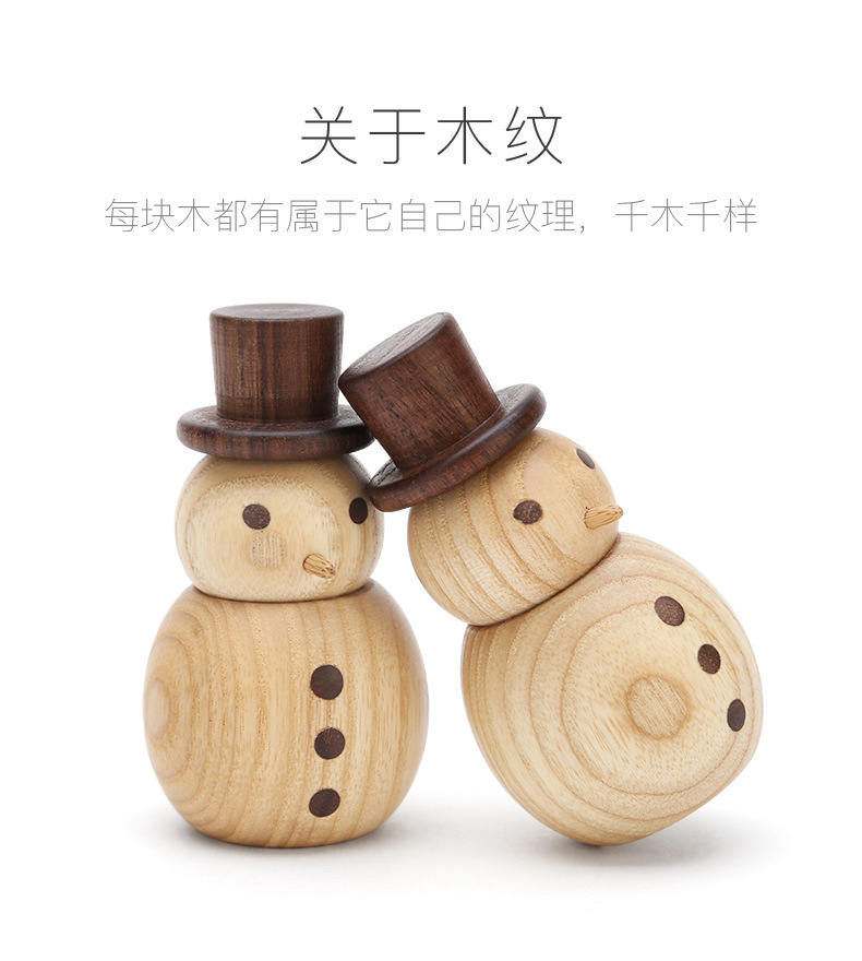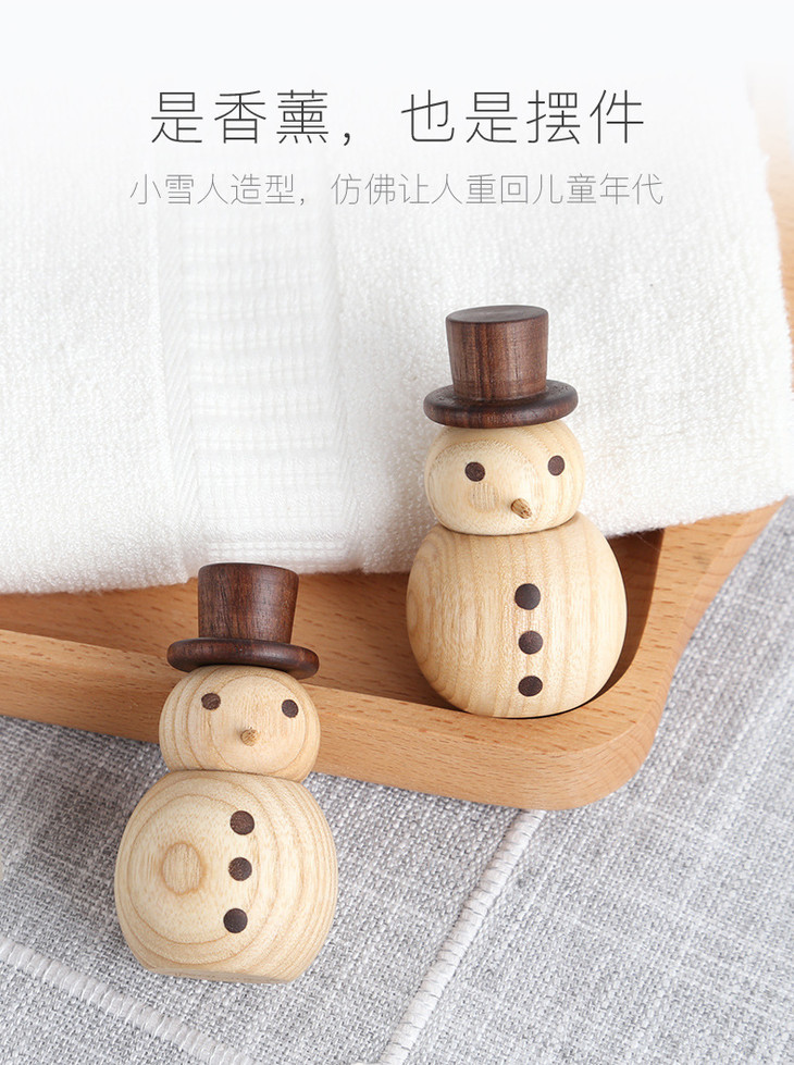 木质小雪人香薰扩香木 办公室卧室车载精油香氛摆件礼品