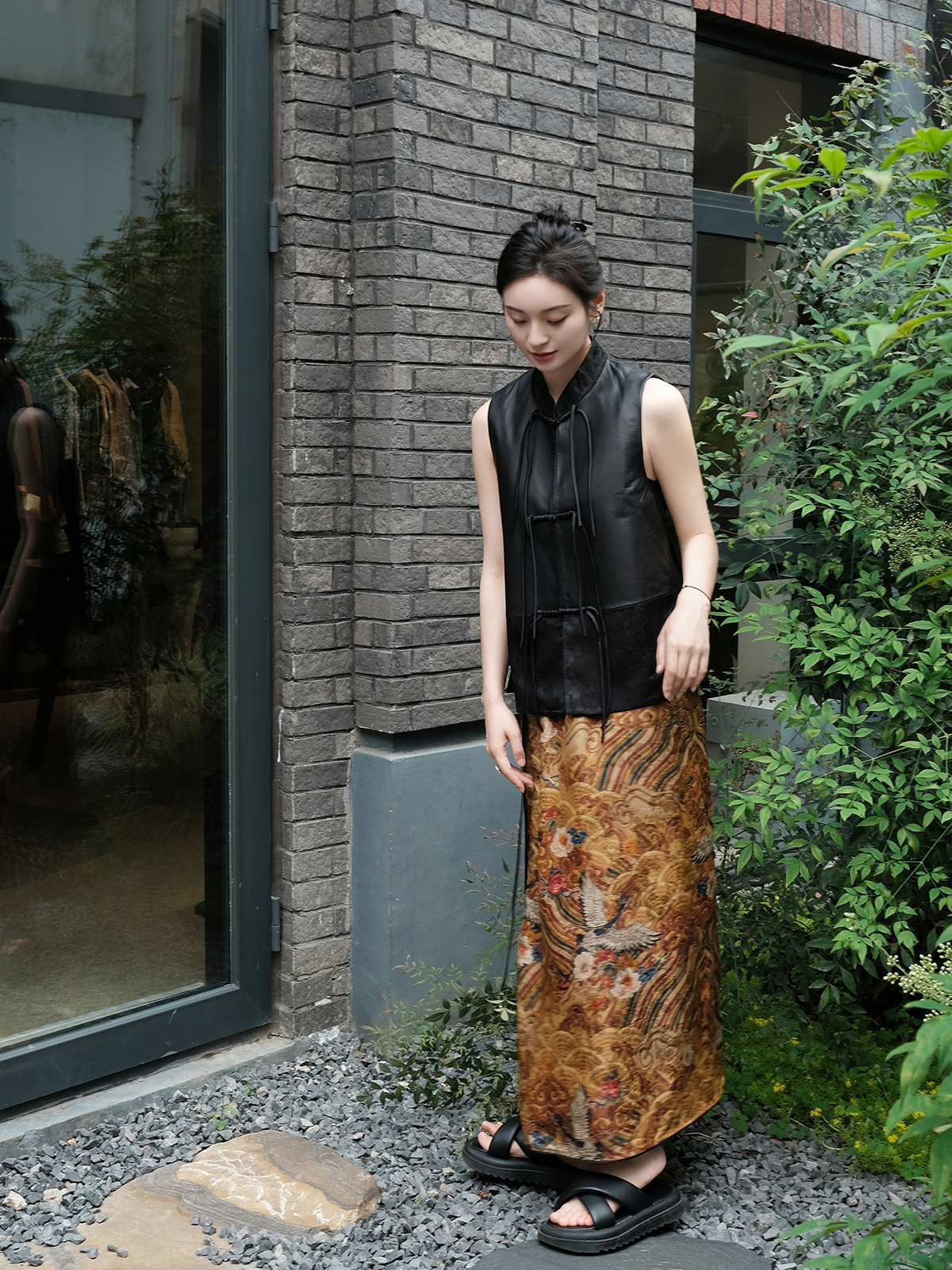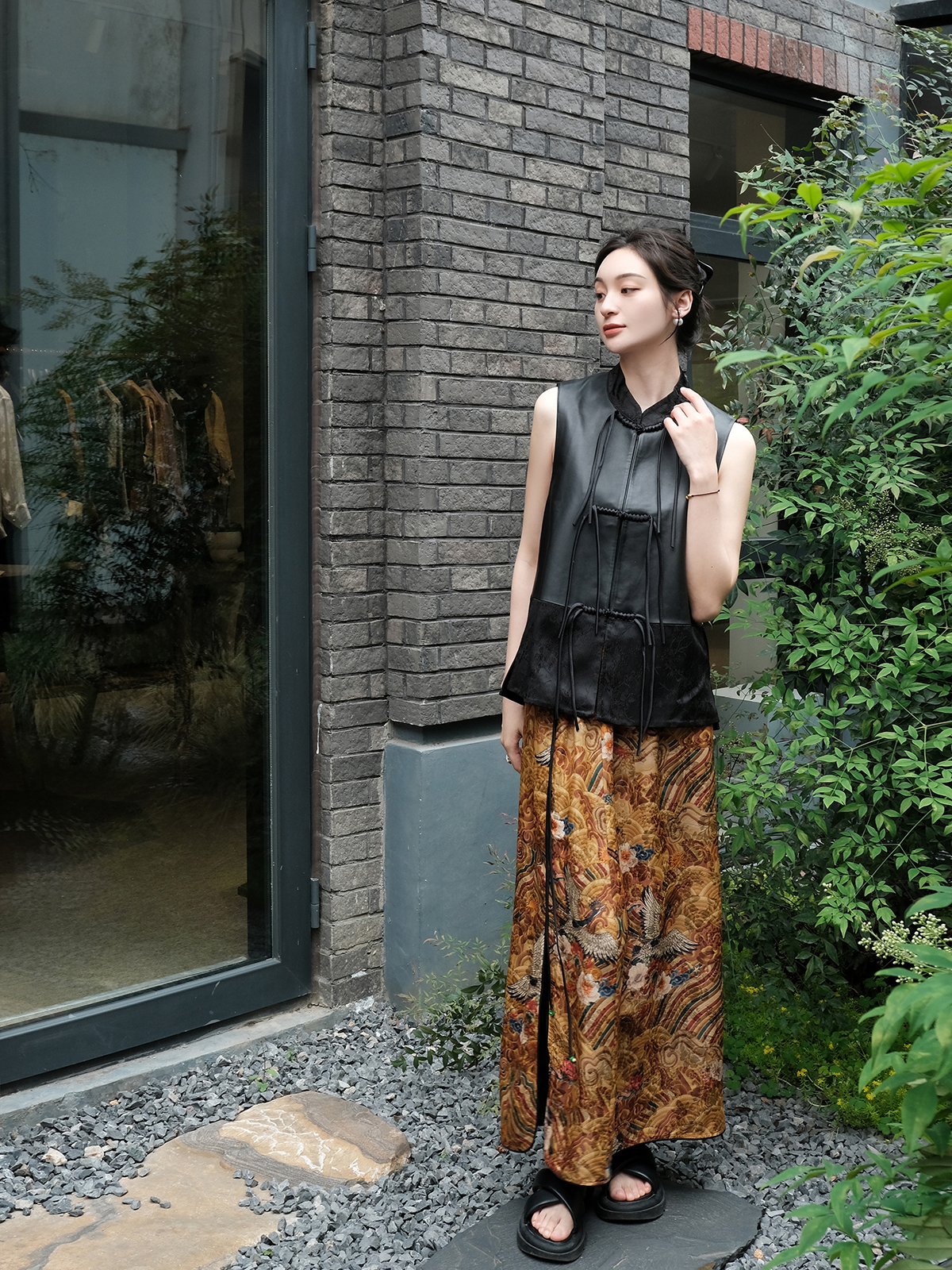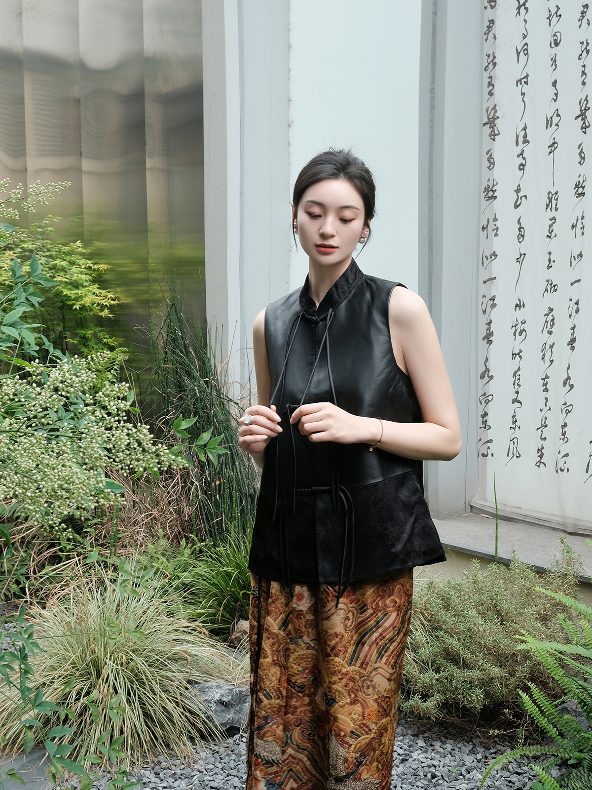盛唐牡丹 |绵羊皮新中式对襟马甲