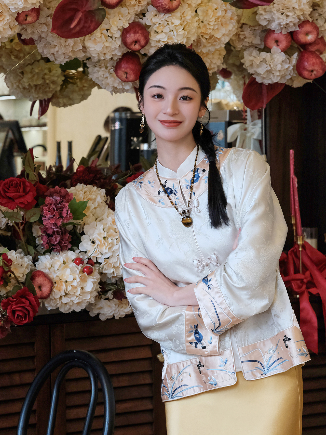 瑕疵|盛唐牡丹 |喜上眉梢手推绣对襟上衣[特价品]](特殊商品不退不换)