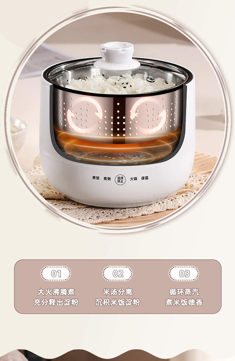 【一锅多用❗️多功能电饭煲】简约不简单「多功能沥糖电饭煲」花样味蕾享受,汤/粥/火锅样样精通,家用学生宿舍煮饭迷你电火锅,小功率蒸煮不粘电饭锅L