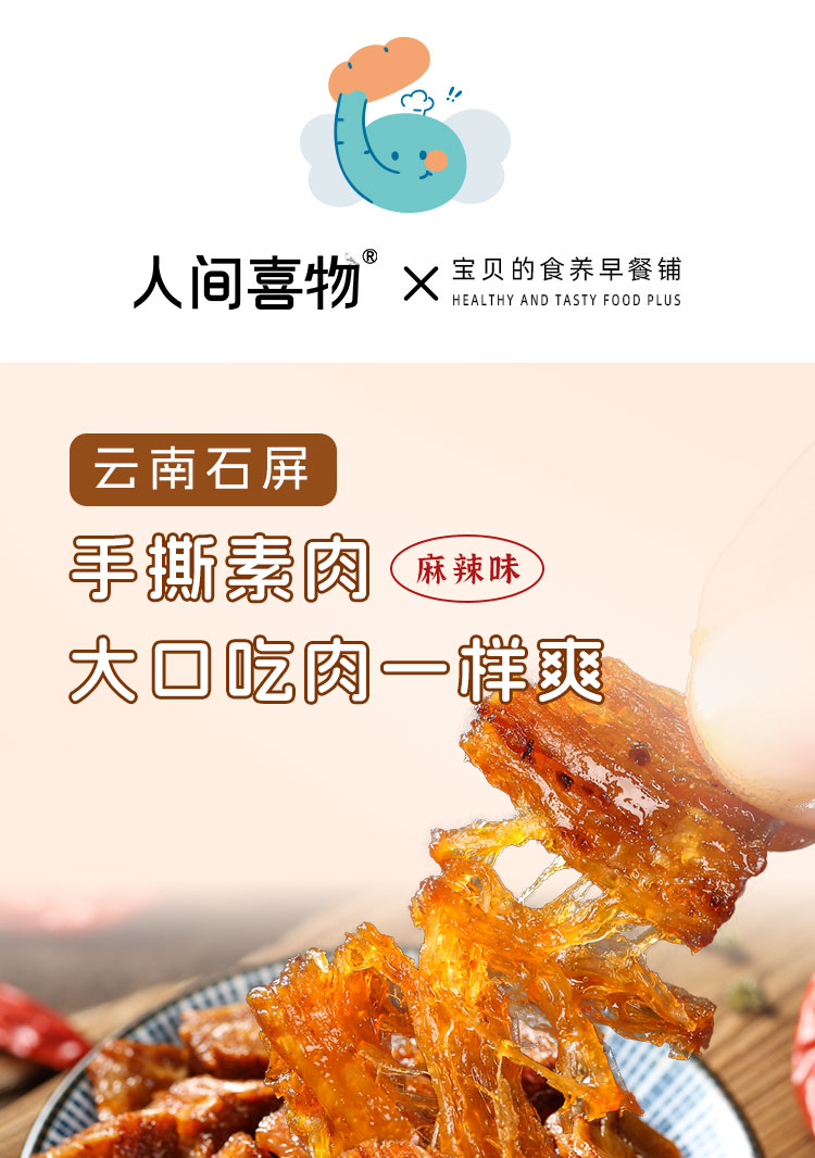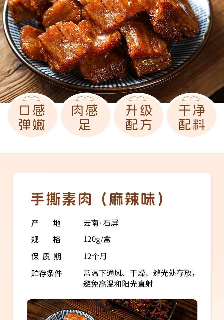 麻辣味手撕素肉 石屏豆腐干 健康配料 口感蓬松弹嫩 120g/盒 含8小袋 开袋即食(石屏极兔发货)