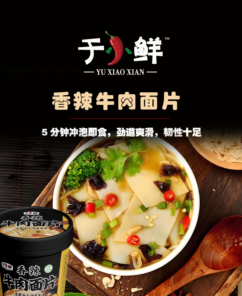 【6桶整箱】清真香辣牛肉面片93g/桶*6桶 于小鲜西北特色牛肉面片速食面片