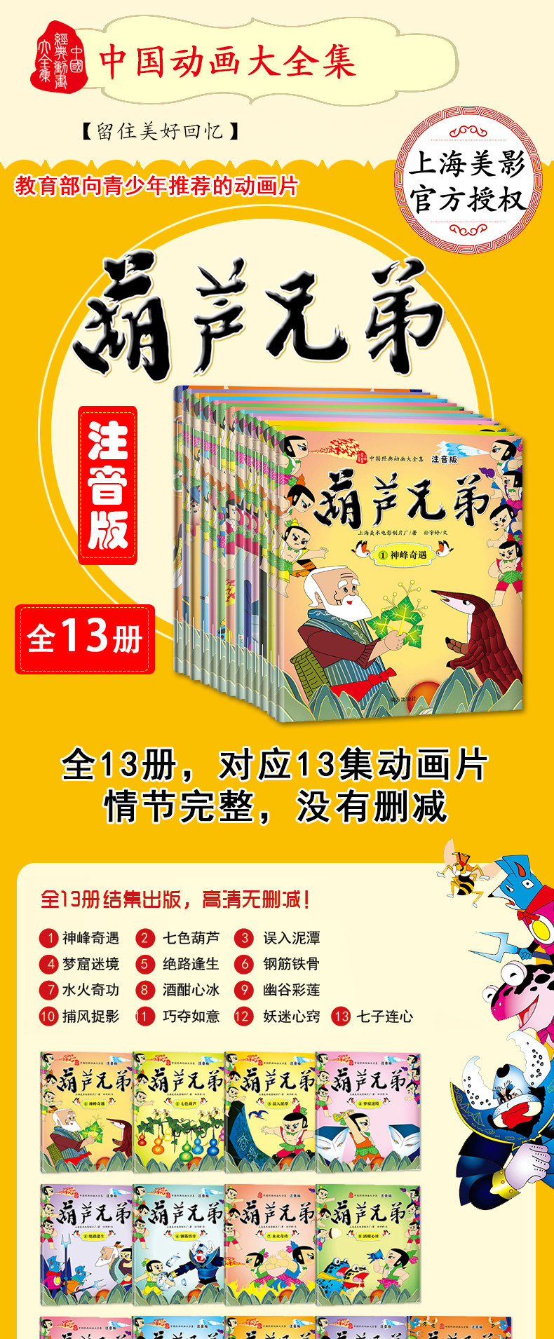 葫芦娃故事书注音版全套13册正版金刚葫芦兄弟图书绘本儿童小人书老版卡通漫画连环画童话故事书3-6-12岁图书拼音幼儿园小人书籍