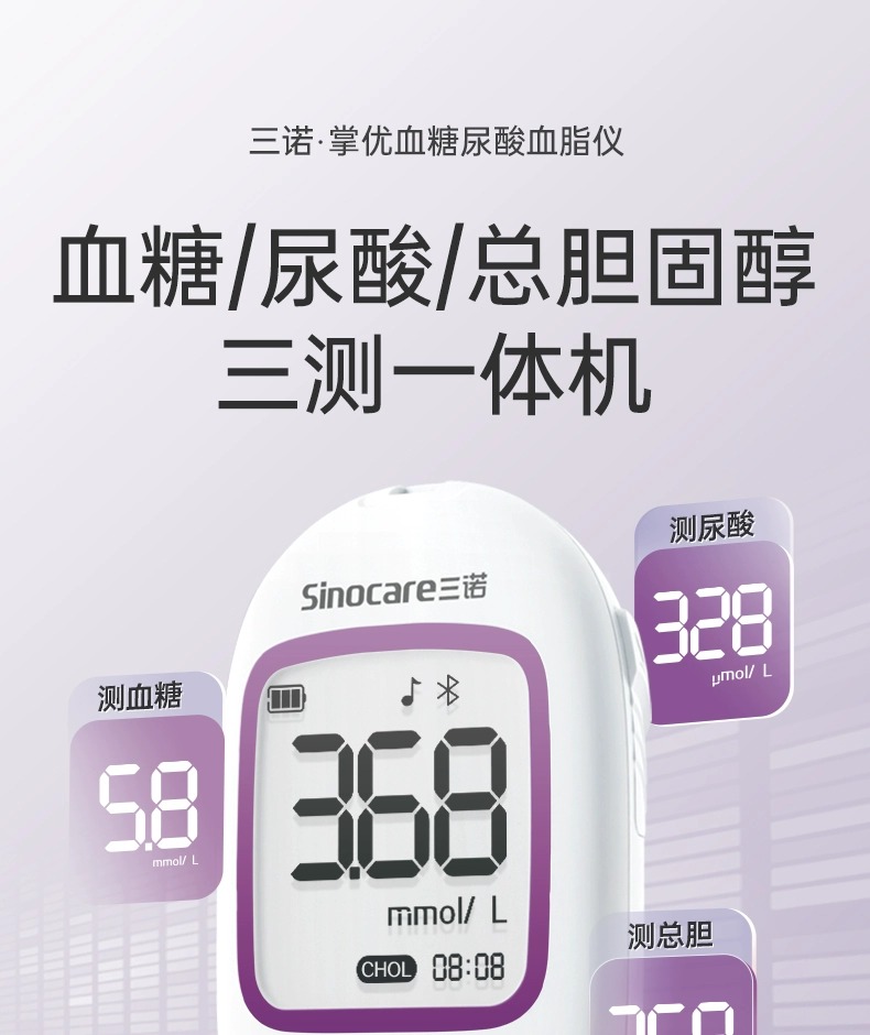 三诺血糖尿酸血脂胆固醇三合一体机测试仪