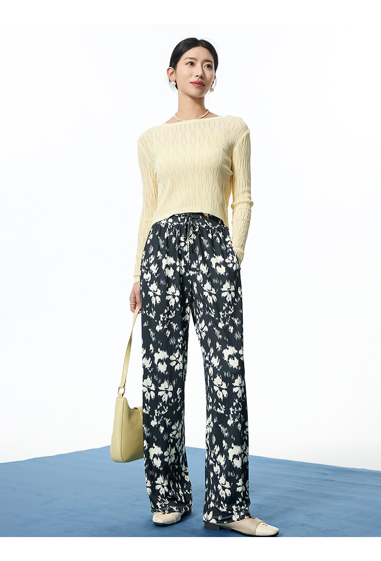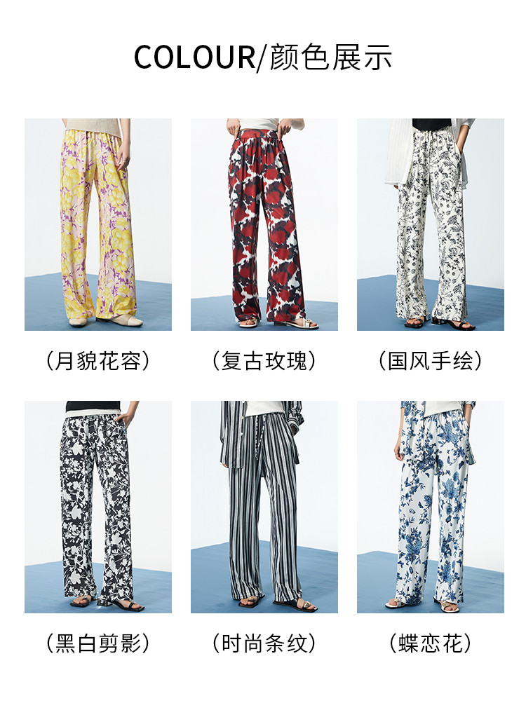 I'd爱帝女士印花阔腿裤轻薄透气家居裤凉感速干休闲裤