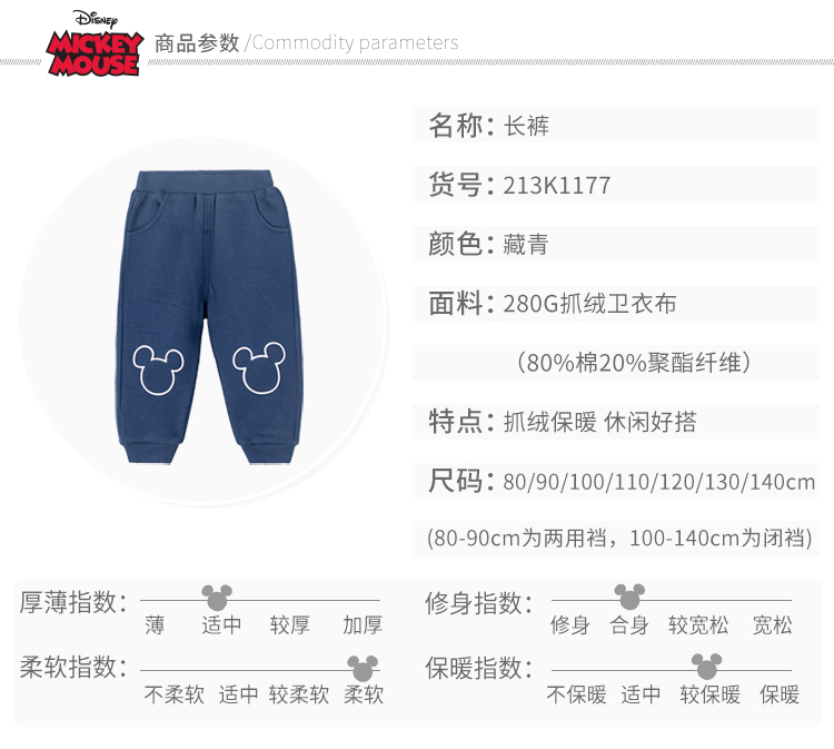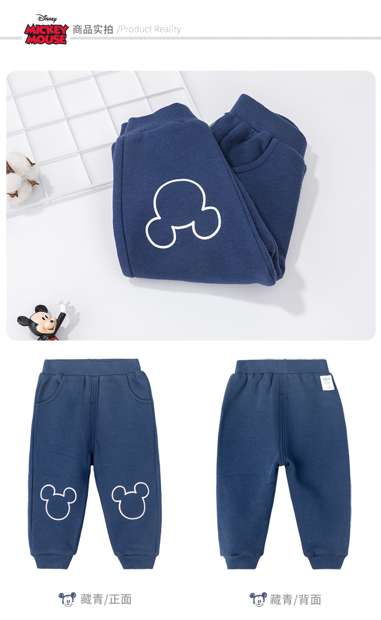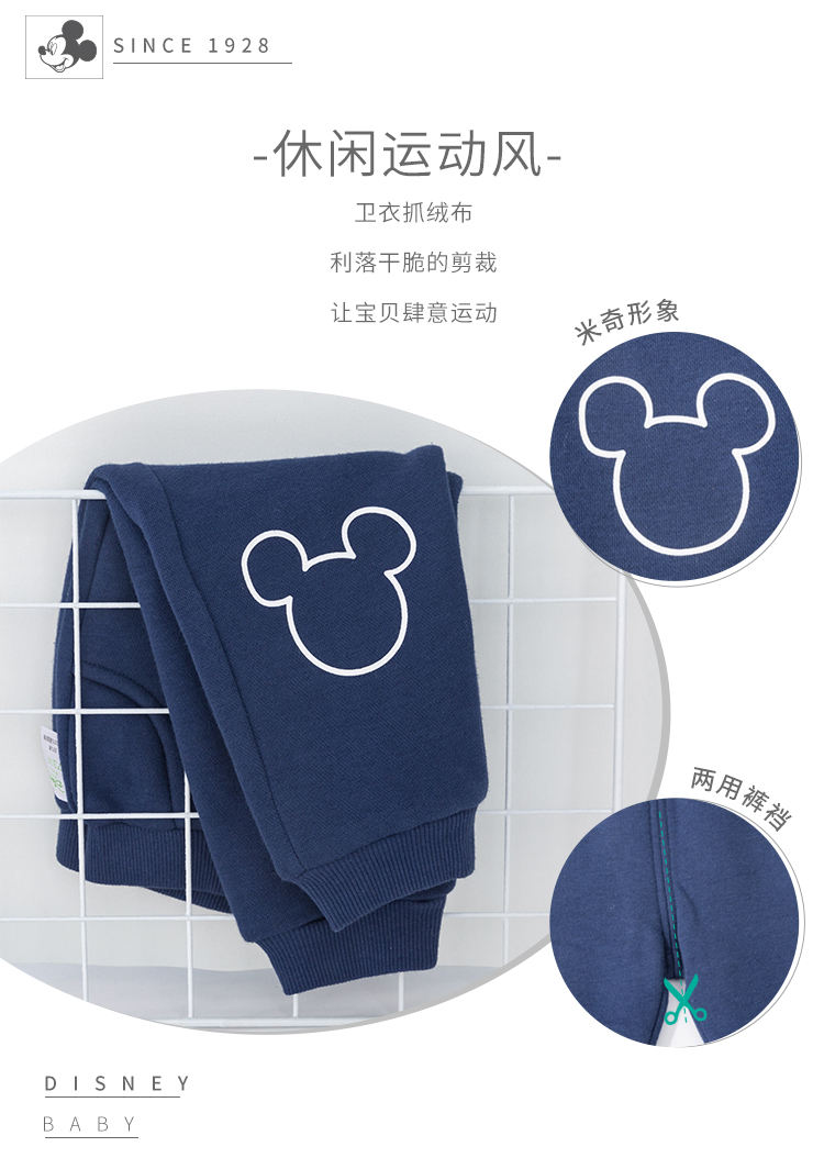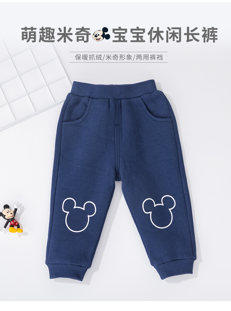 迪士尼米奇卡通男童宝宝春秋抓绒休闲长裤裤子