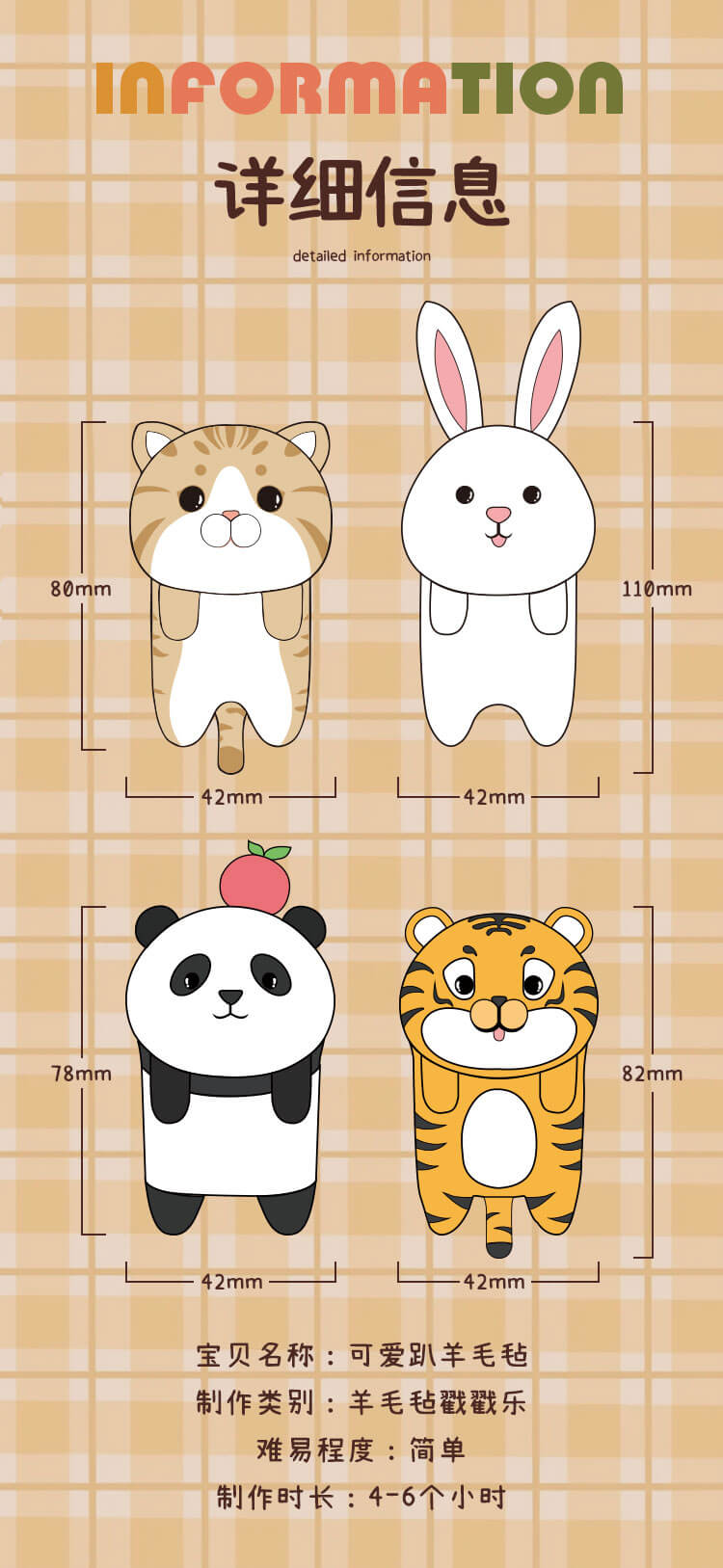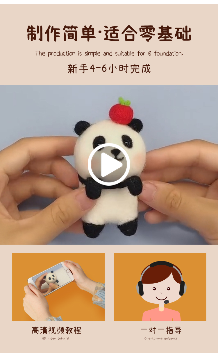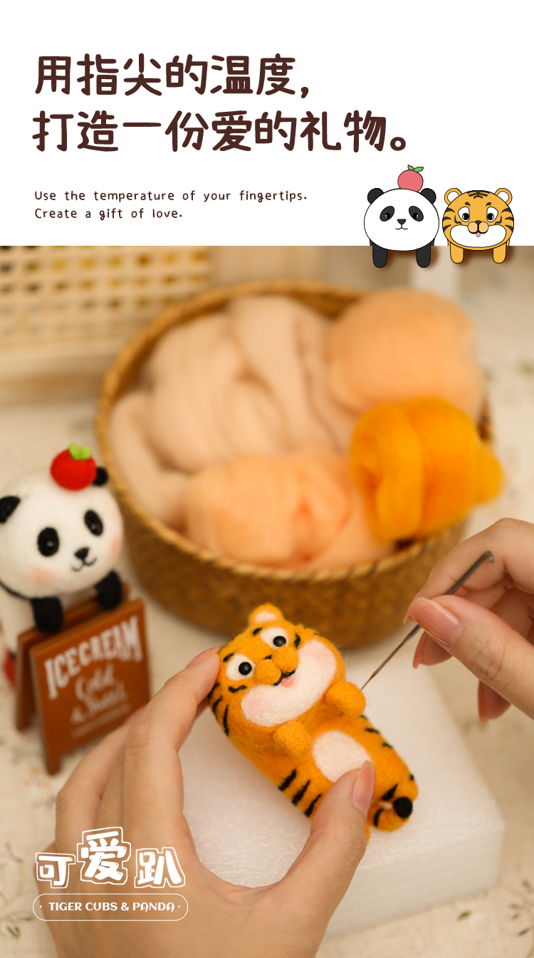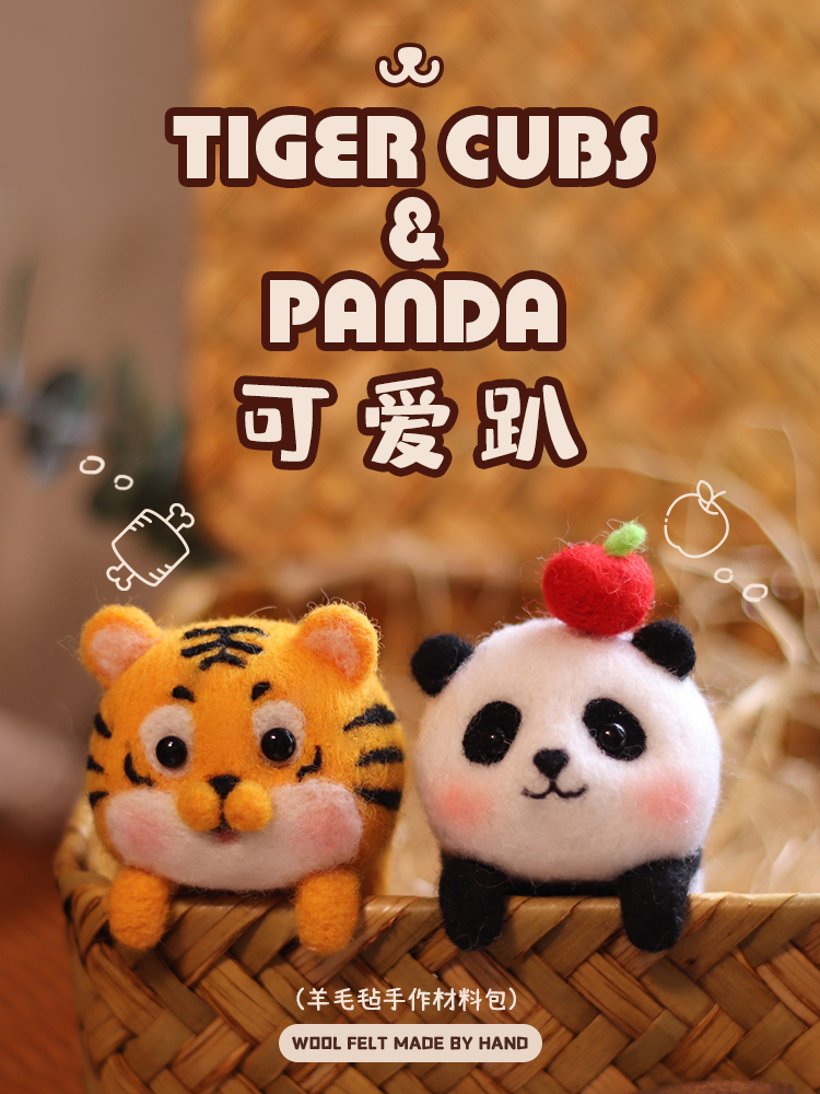 「羊毛毡戳戳乐」可爱挂件、摆件可爱趴系列小老虎熊猫玩偶