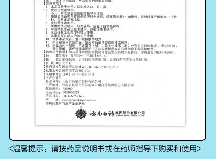 云南白药气雾剂 85g+30g喷雾剂 喷剂跌打损伤 消肿止痛 风湿痛