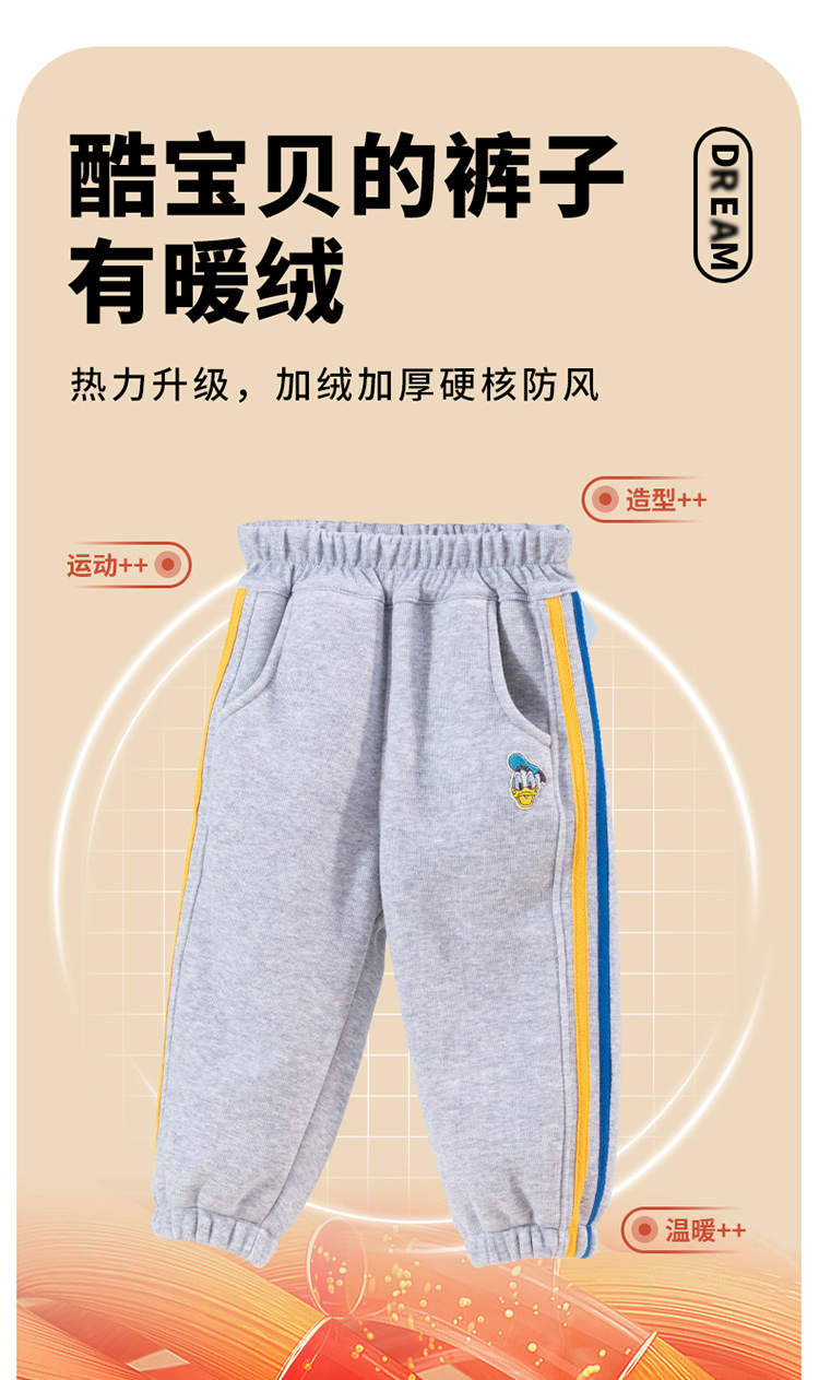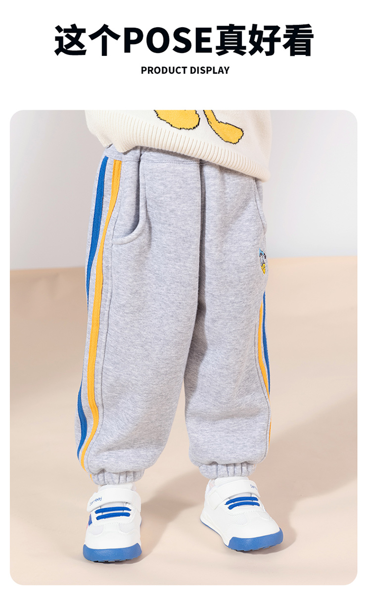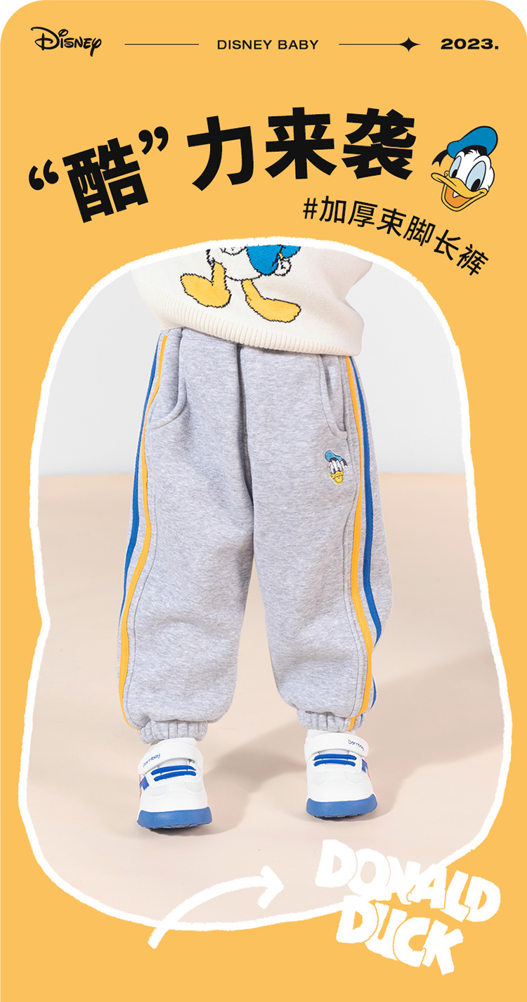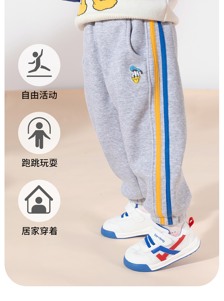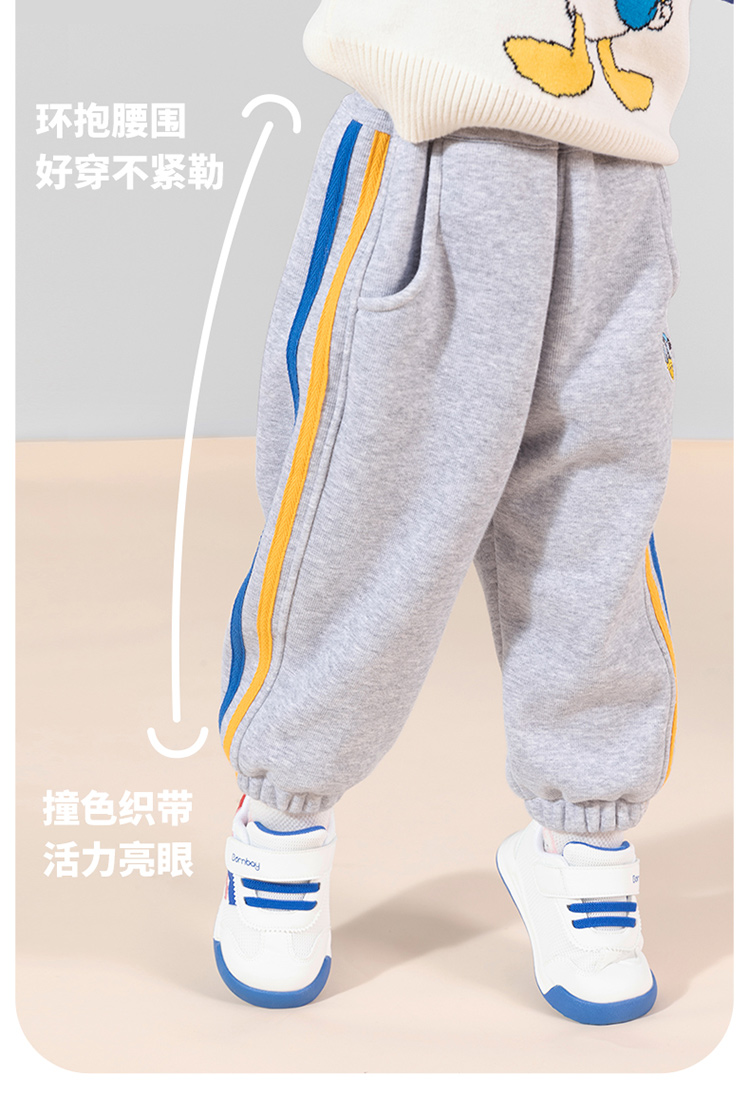 迪士尼童装男童百搭休闲长裤冬季新款加绒加厚撞色束脚裤ZD3CK002