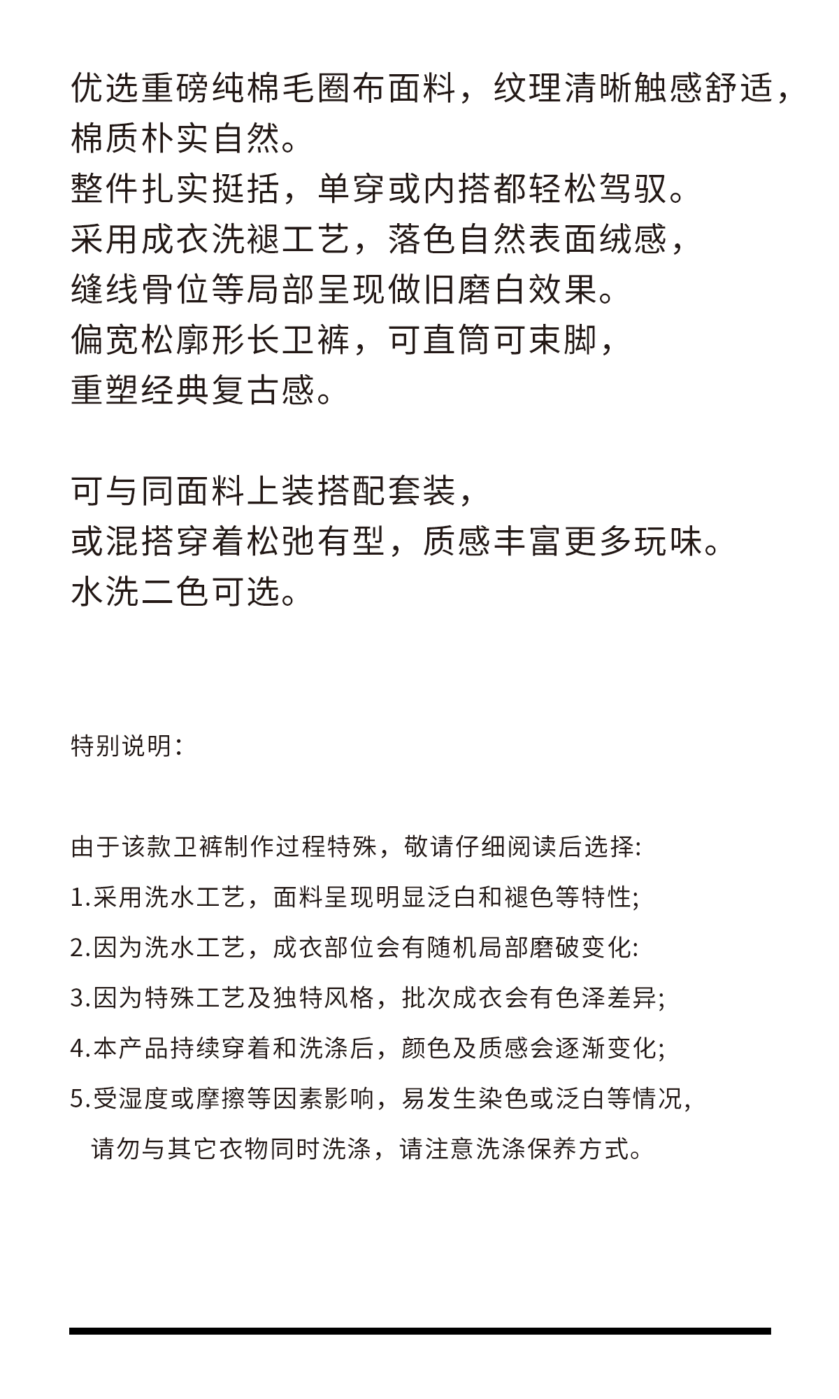 吃茶去chichaqu25重磅洗褪做旧长卫裤复古宽松街头休闲运动