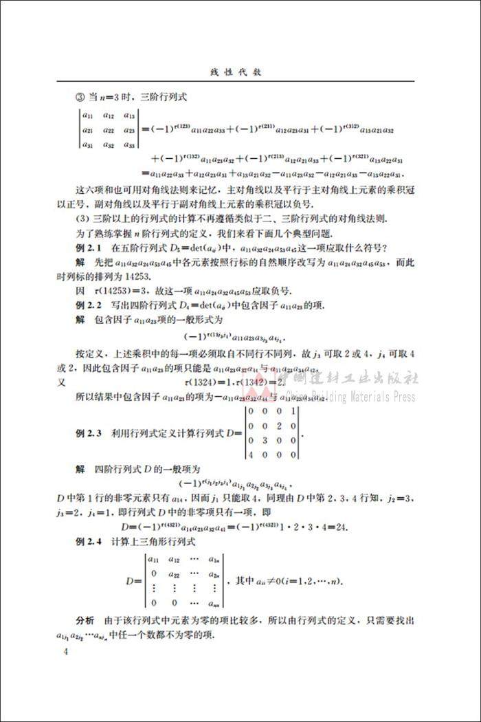本书共分为四章,主要介绍行列式、矩阵、线性方程组和相似矩阵及二次型。在每章最后均配备了习题,并给出答案可供参考。