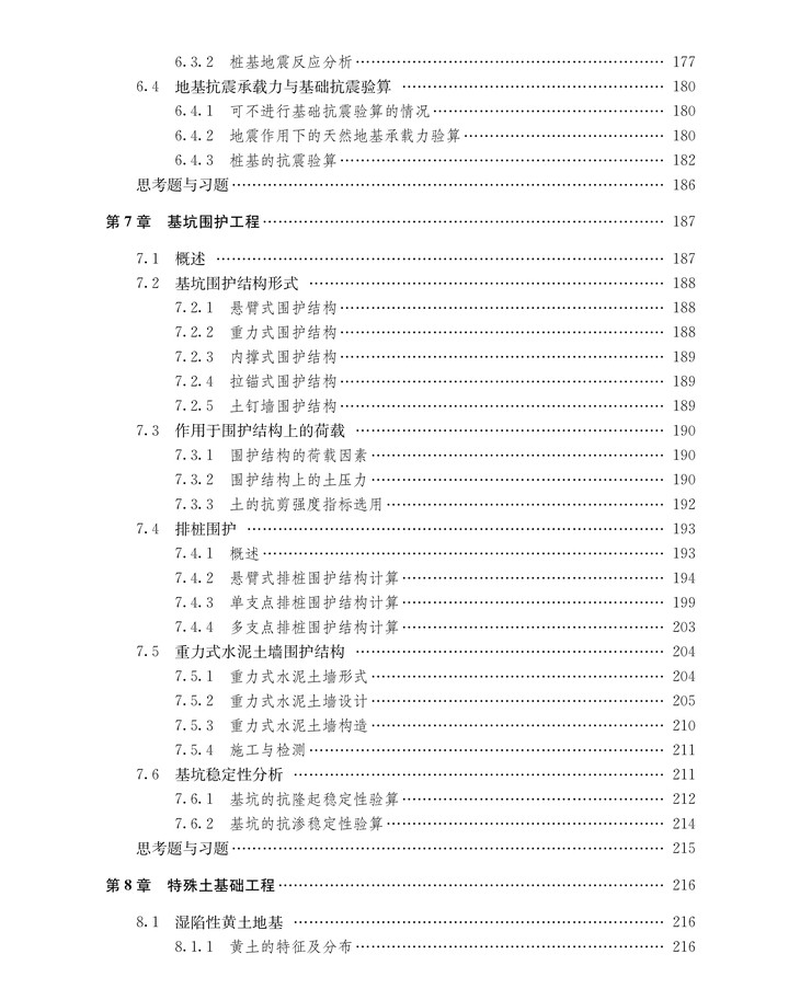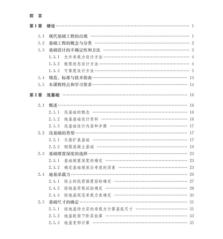 本书包括绪论、浅基础、连续基础、桩基础、沉井基础、基础抗震设计、基坑围护工程、特殊土基础工程及工程地质勘察等内容。本书内容紧扣毕业要求指标点,体现注册工程师对专业知识的要求。本书除第1章外,每章后均附有思考题与习题;每章节均配有二维码,可通过手机扫描二维码查看章节课件、思考题与习题答案,以利于学生课后复习与自学。