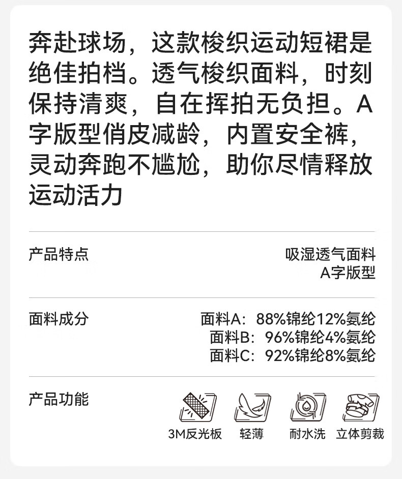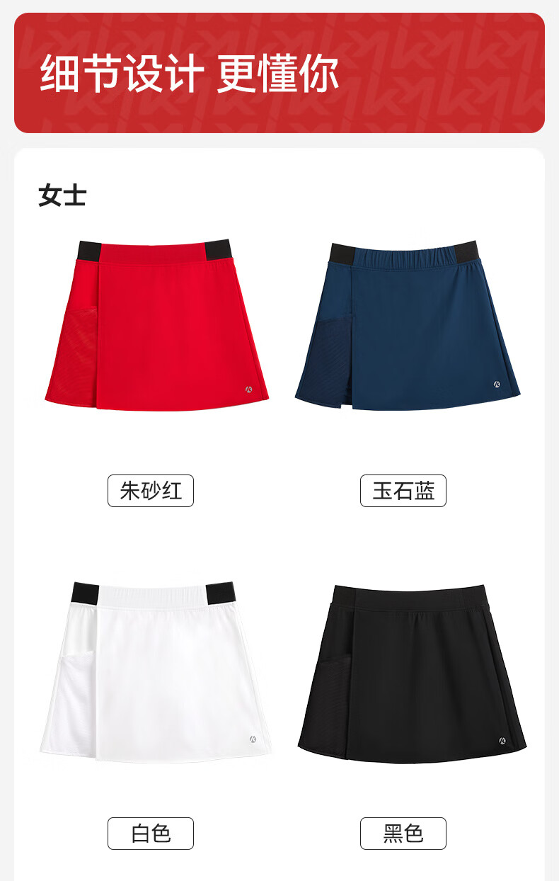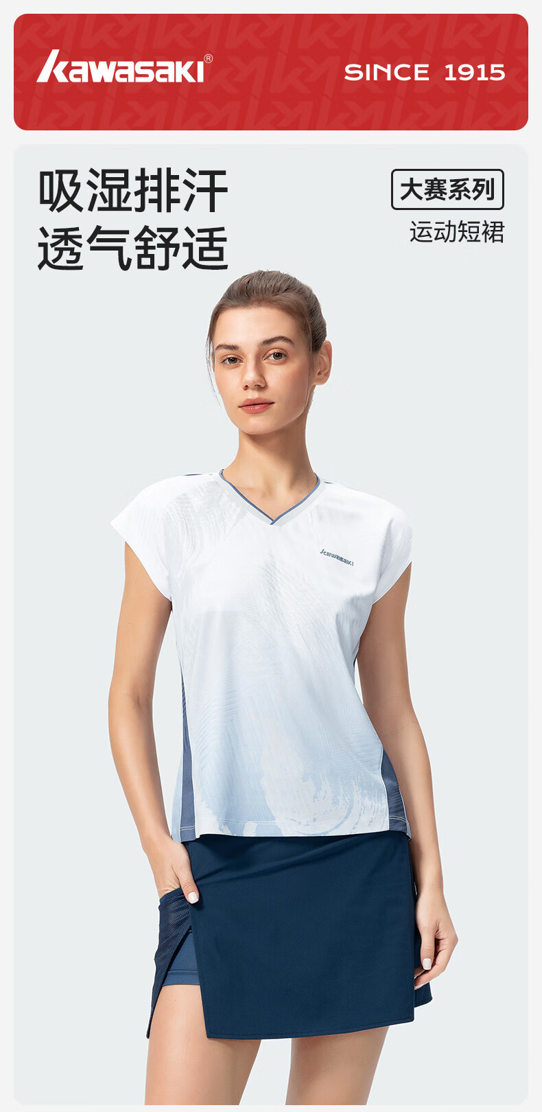 川崎 羽毛球服女款青花瓷速干短裙透气短裙运动T恤 K1C02-A2946/K1C09-A2775