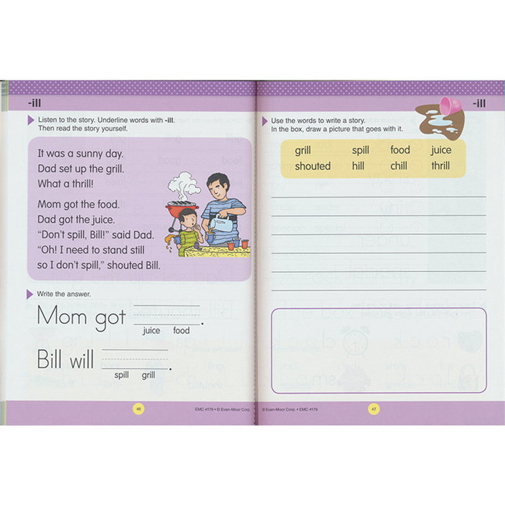 本书会教孩子语法知识和标点符号的使用技巧,例如单词的词性、标点符号的运用以及何时使用大写字母,并练习阅读、写作和理解等重要的基本技能。