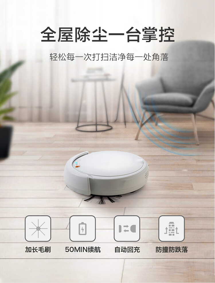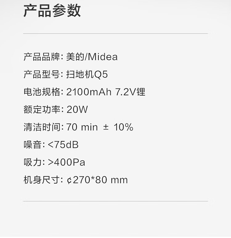 美的(Midea)扫地机器人 高效除尘 智能全屋快扫 一键操作 扫地机Q5