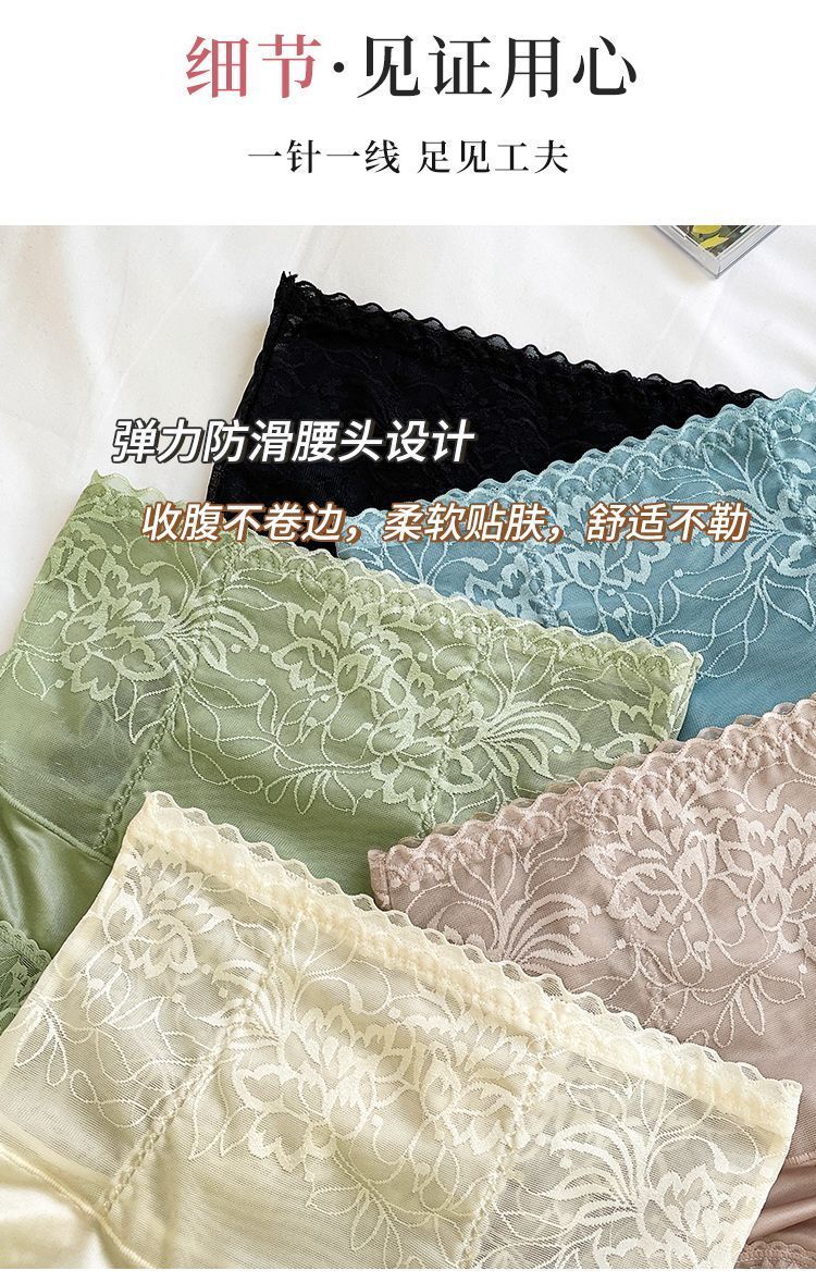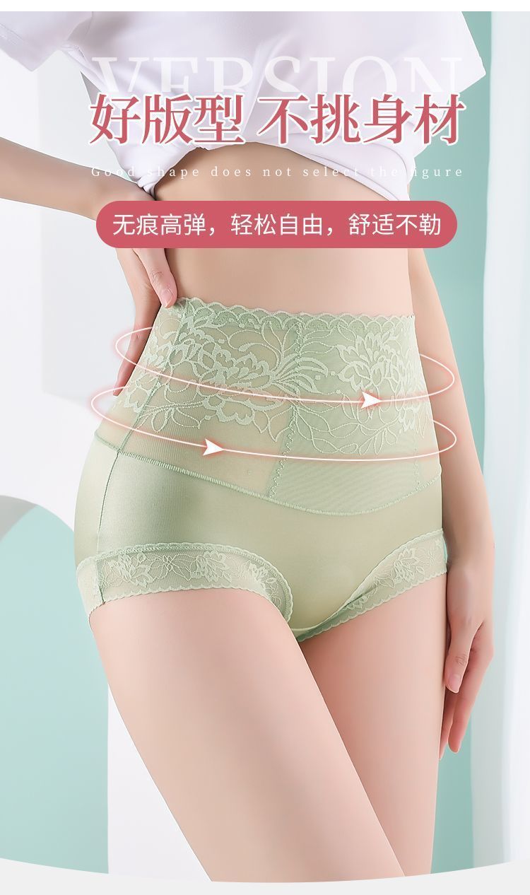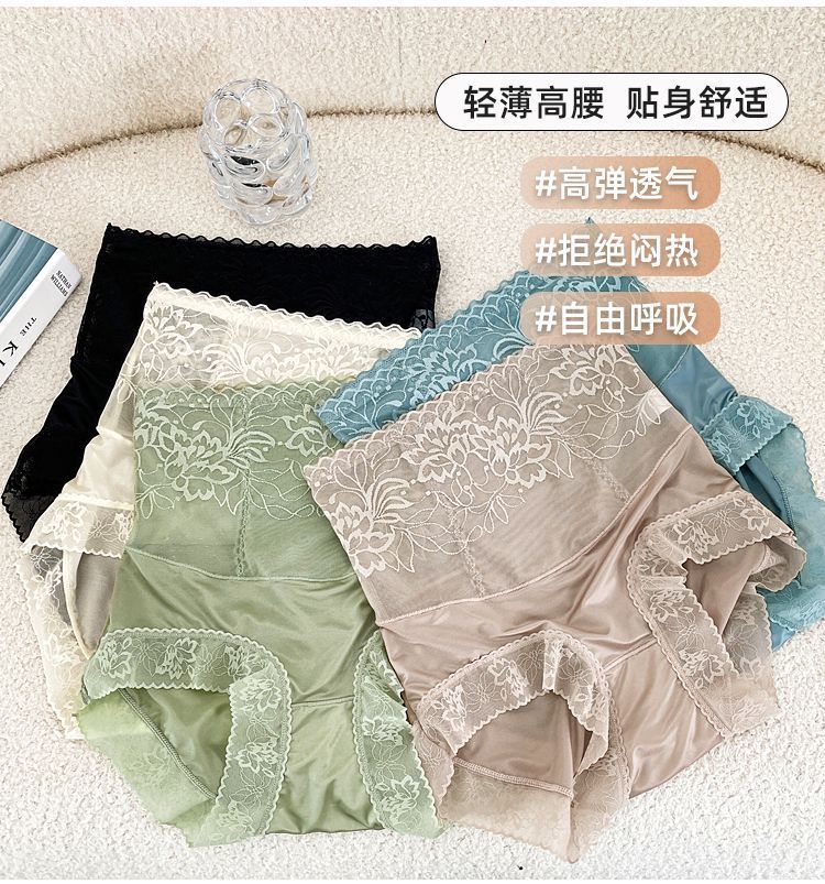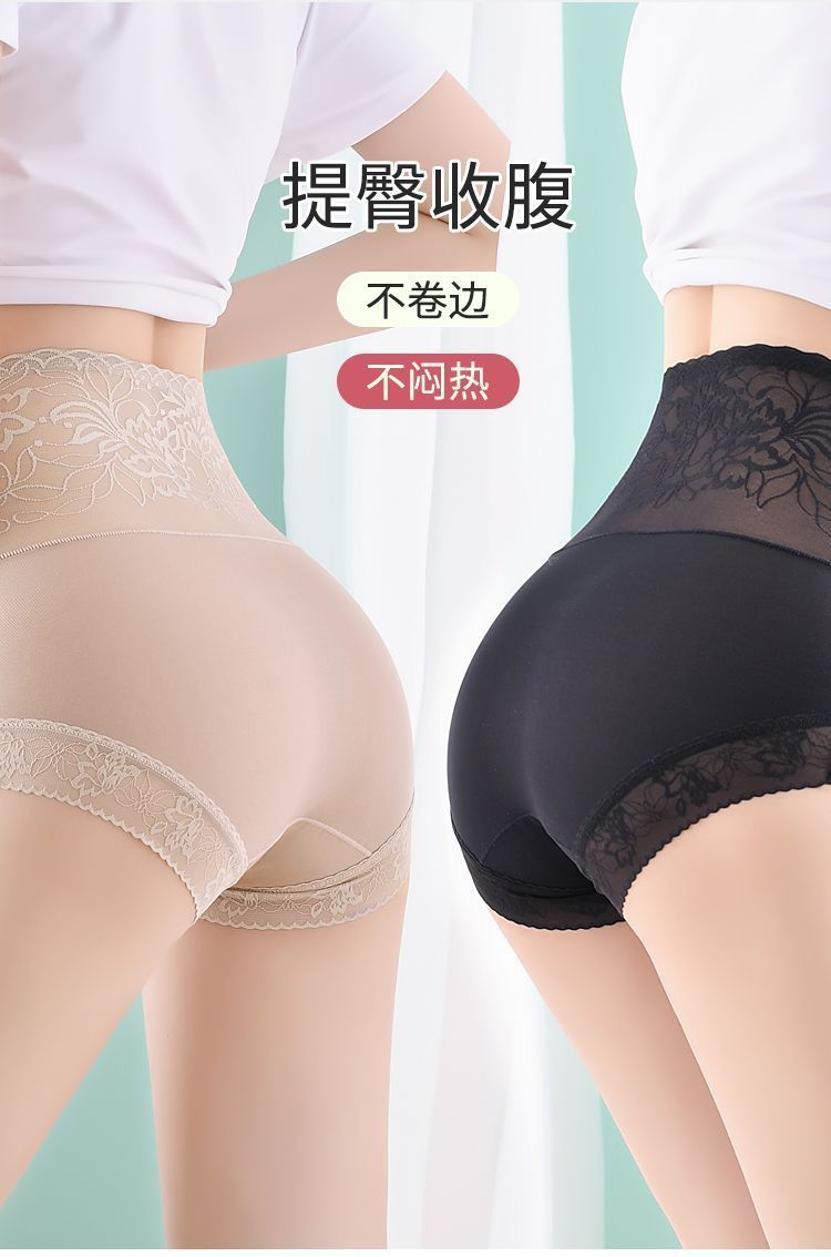【穿出小蛮腰!蕾丝高腰缎面内裤】高弹透气,不刺痒,不卷边,不紧勒!法式花边华尔缎提臀舒适透气塑形塑身美体裤子
