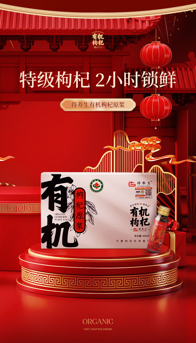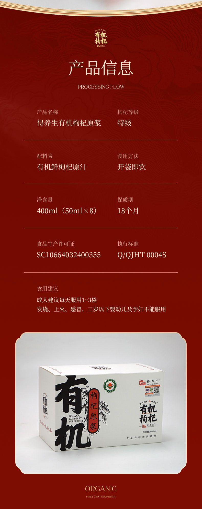 得养生有机枸杞原浆400ml*1盒装宁夏特级滋补熬夜开盖即食0添包邮