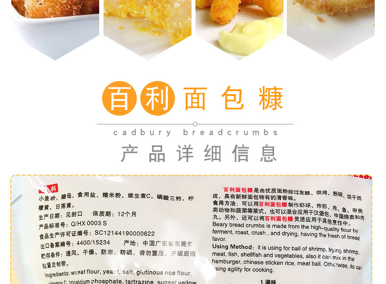 百利面包糠230g 脆皮油炸鸡腿排裹粉金黄面包屑