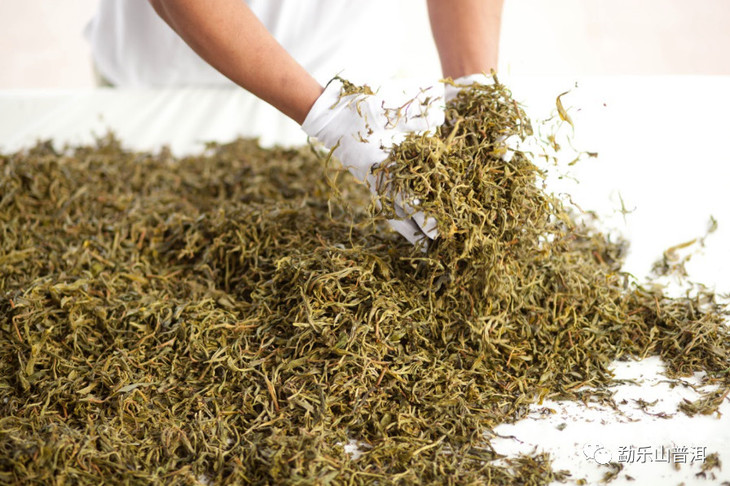 揉捻是条形、茶质形成的一个重要环节,鲜嫩的茶叶,都在这一步紧压成条,变成【勐乐山老班章49号】,而那些不小心采下的老叶,将在这一步被区别开来。