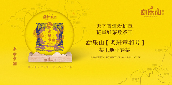 【勐乐山老班章49号】普洱,原料来自勐乐山与老班章村49号合作的茶王地茶园。没有一芽不真,没有一叶造假。我们认真考察每一寸土地,研究茶王地周遭生态。我们与49号茶农同起同憩,与49号的女主人一道采摘鲜叶,与49号的户主成二谈笑风生……在纯净的生态环境中,在纯朴的民风下,纯料、纯正的【勐乐山老班章49号】诞生了!