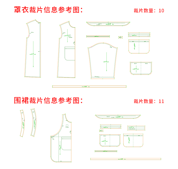 裁缝学苑AH116罩衣纸样女装厨房做饭围裙工作服长袖防泼水围裙样板
