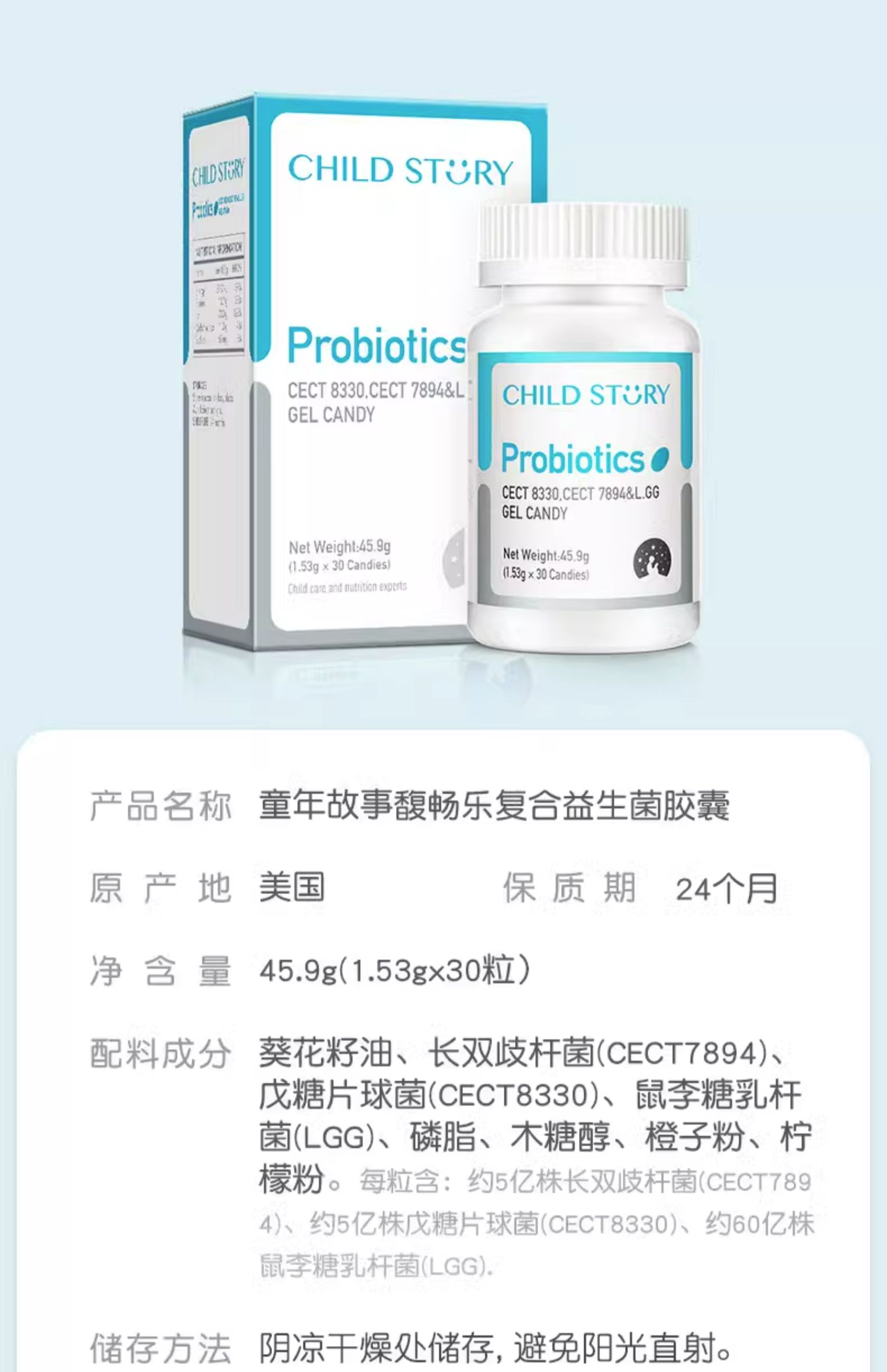 9楼母婴生活馆 4瓶送1瓶 童年故事馥畅乐益生菌儿童宝宝肠胃肠道胶囊30粒/瓶 吊牌价:368元 活动价:368元1瓶 1472元4瓶送1瓶