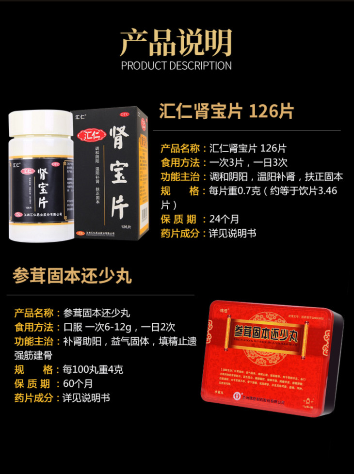 参茸固本还少丸*汇仁肾宝126片组合装益气温阳 强筋补肾 培元固本 男女性补肾中成药品