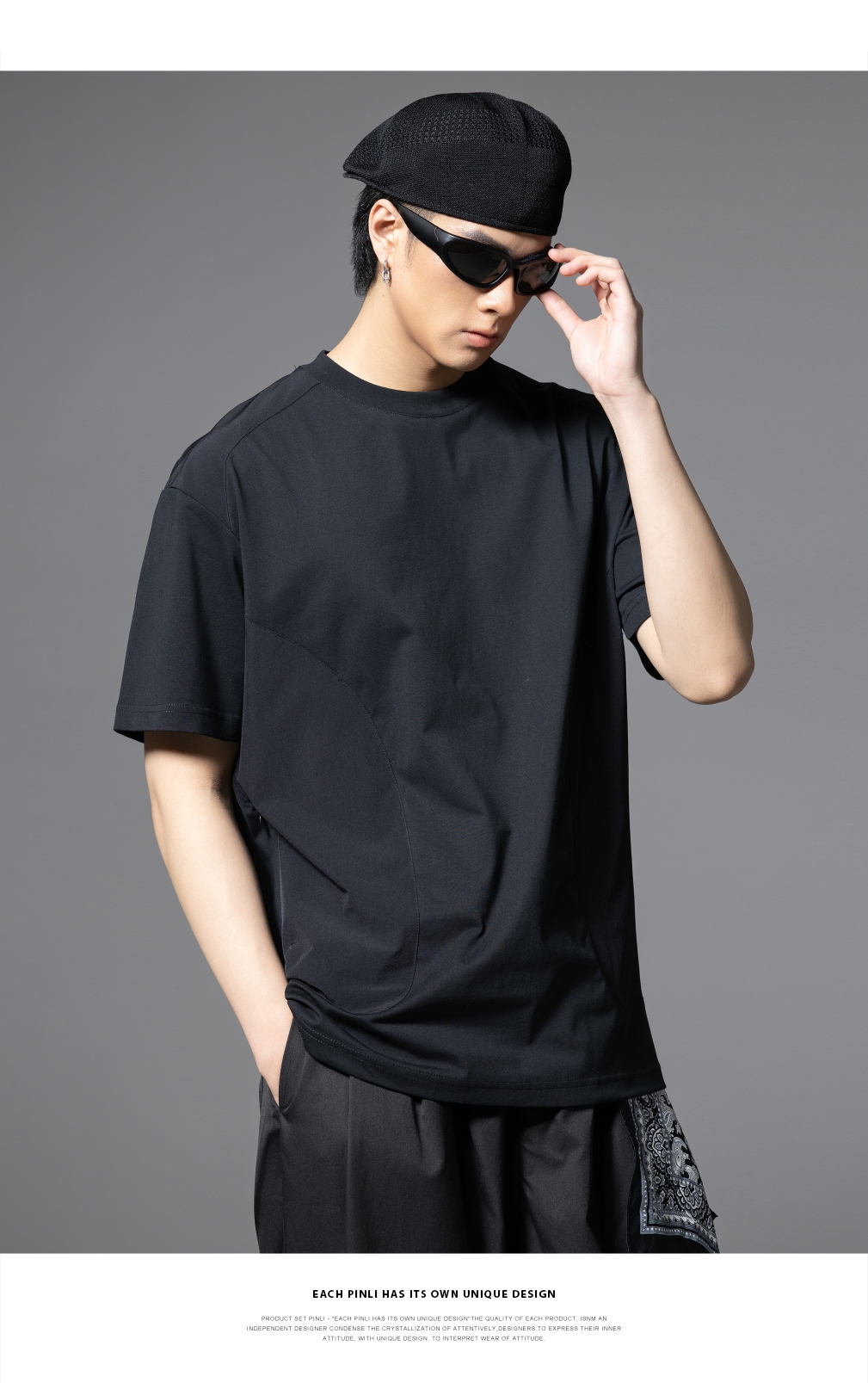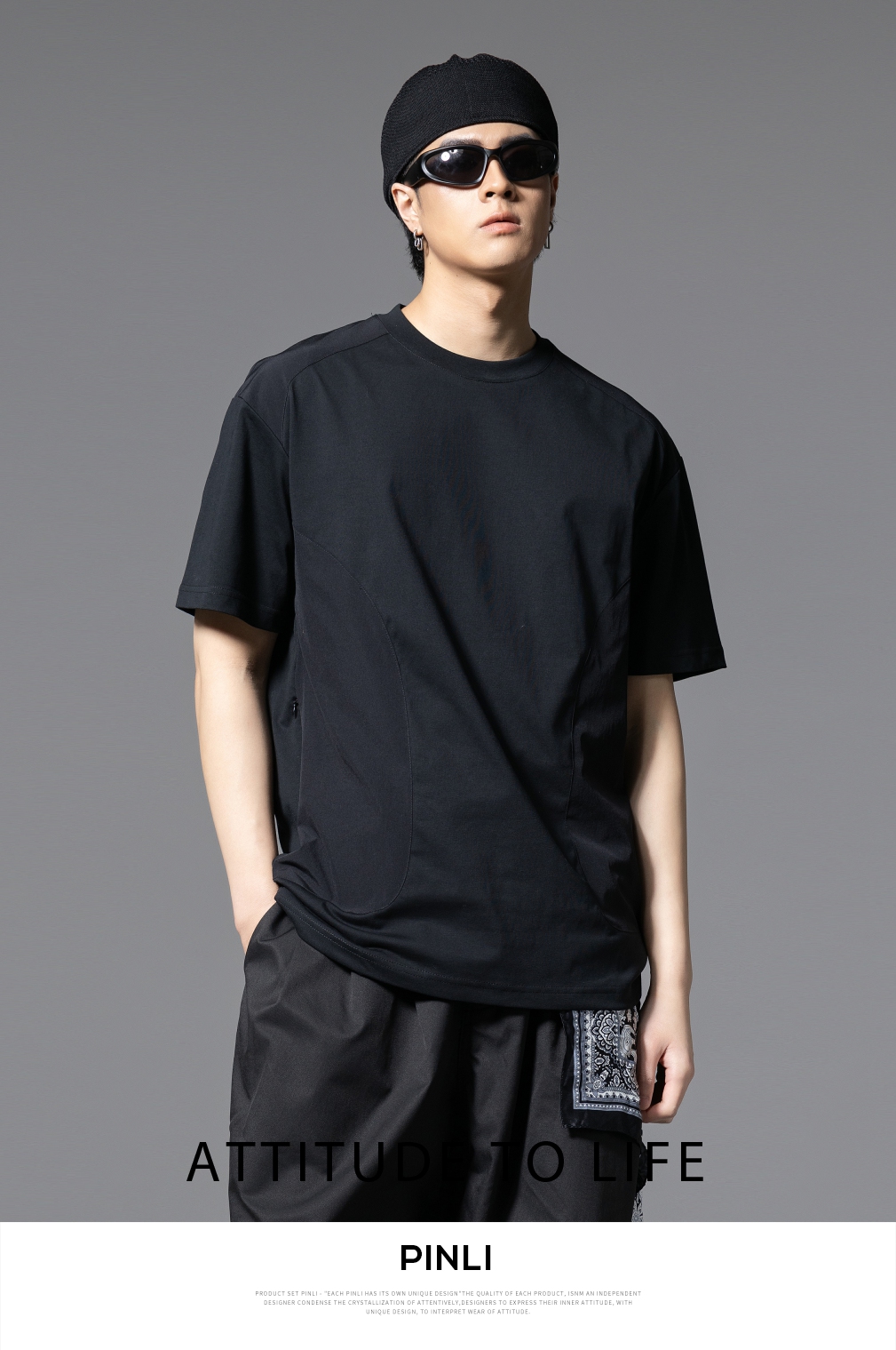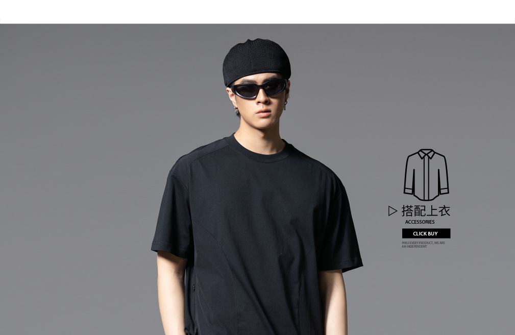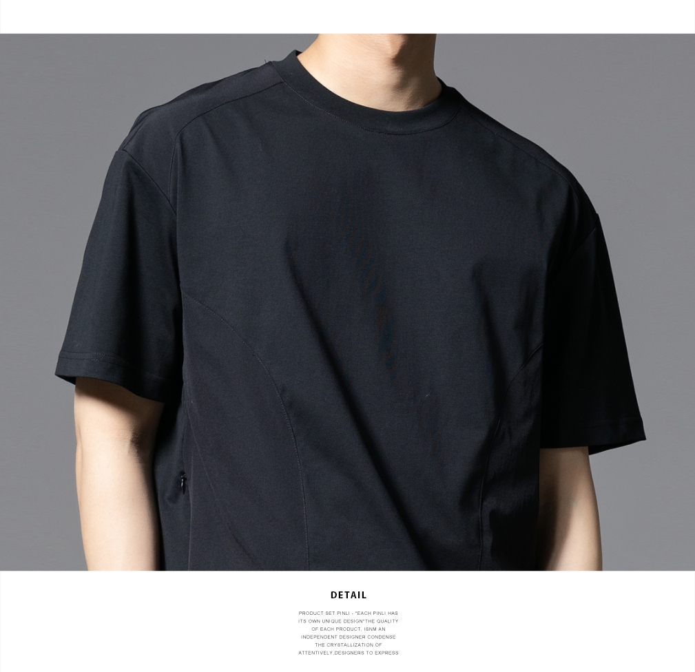 PINLI品立2025春夏新款拼接口袋短袖T恤男士潮牌宽松休闲体恤上衣GD251211128