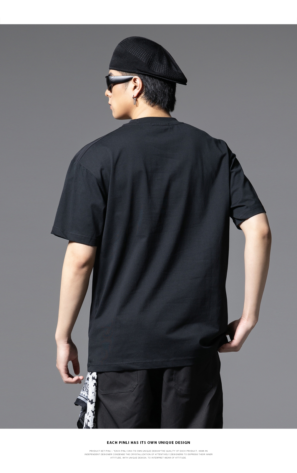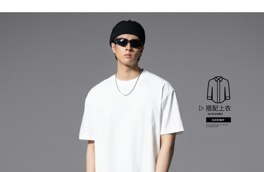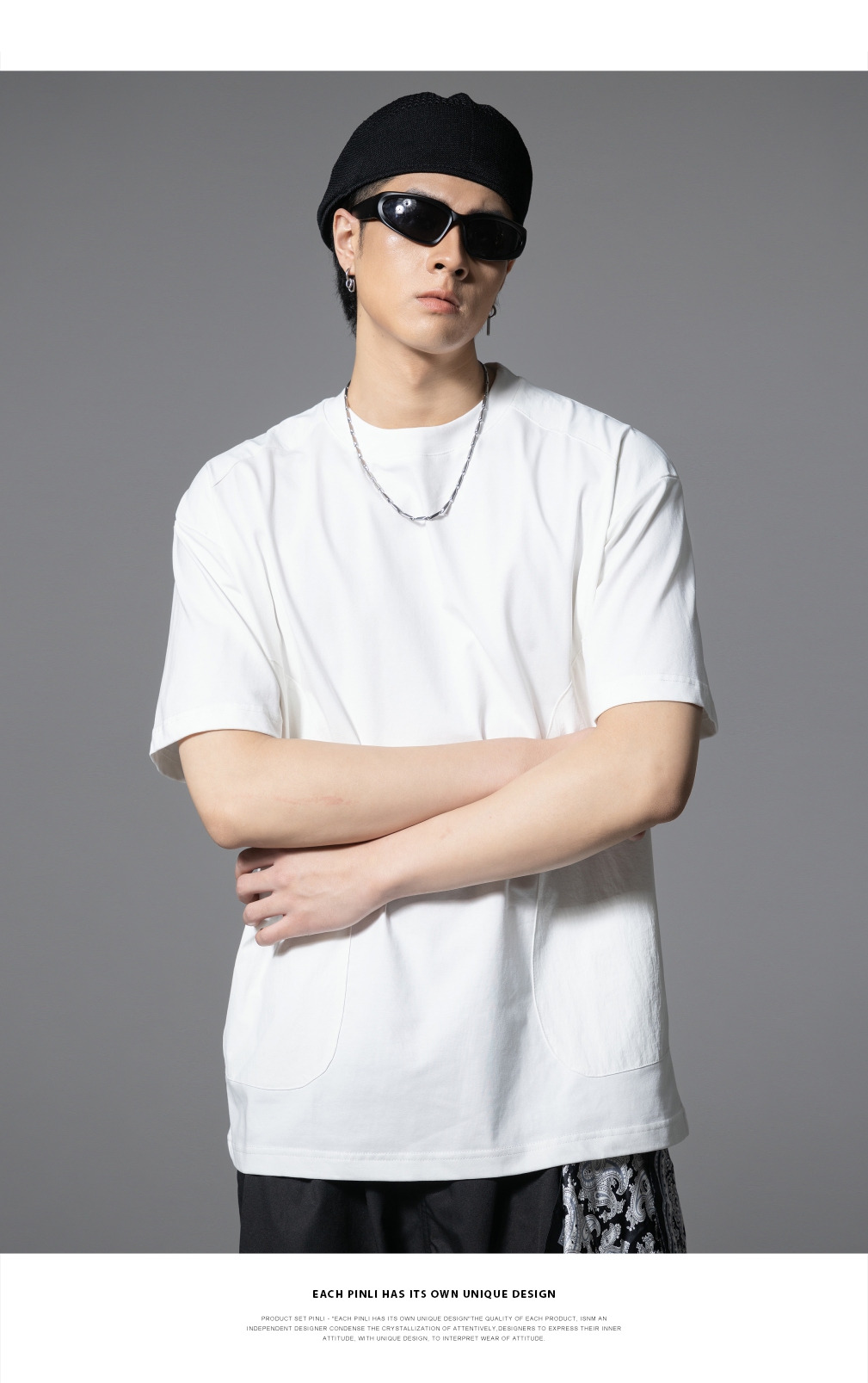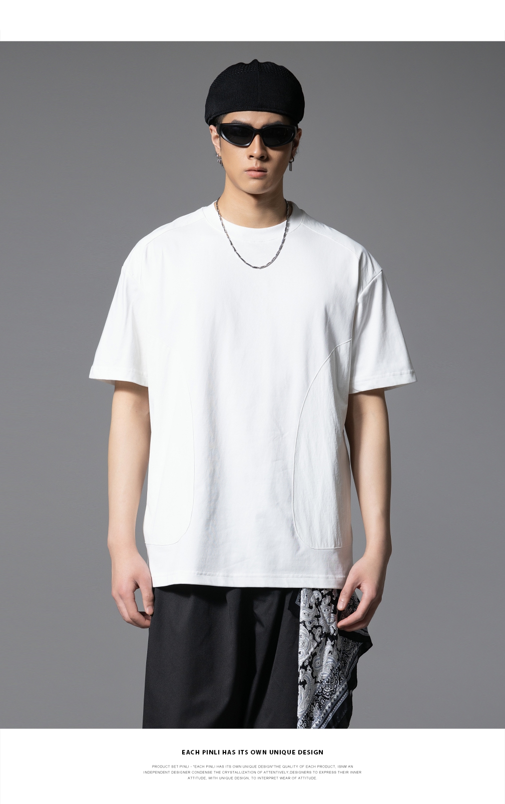 PINLI品立2025春夏新款拼接口袋短袖T恤男士潮牌宽松休闲体恤上衣GD251211128