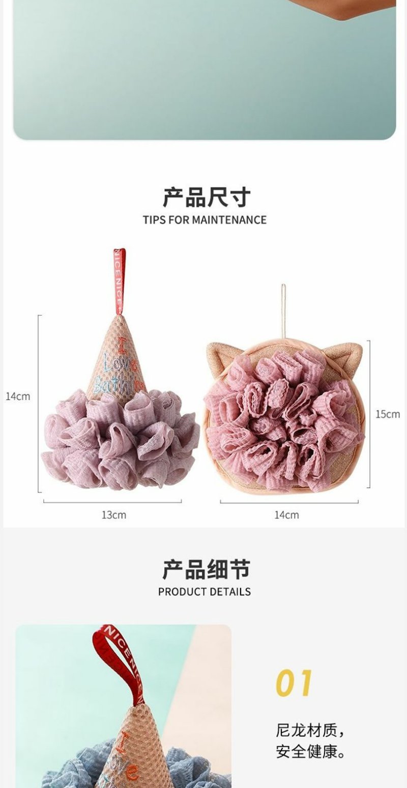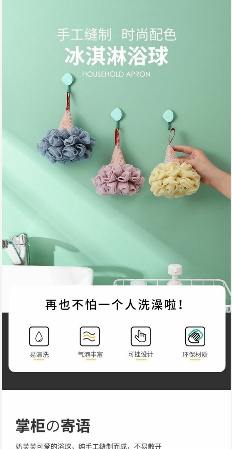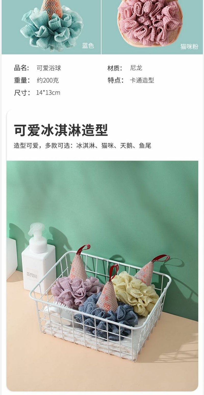 可爱冰淇淋沐浴球女浴花搓澡巾宝宝洗澡神器搓后背浴室用品泡沫球