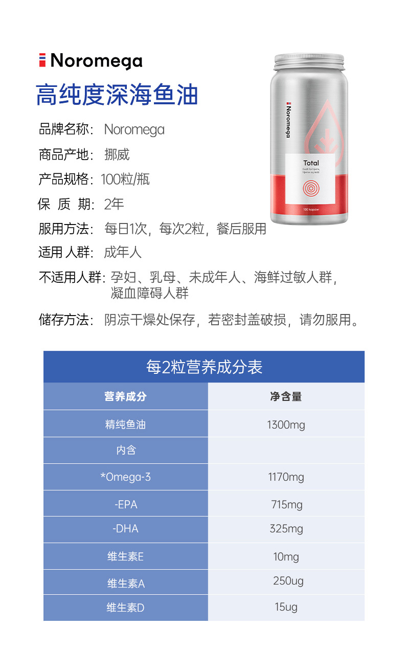 【S】挪威进口Noromega高纯鱼油胶囊100粒