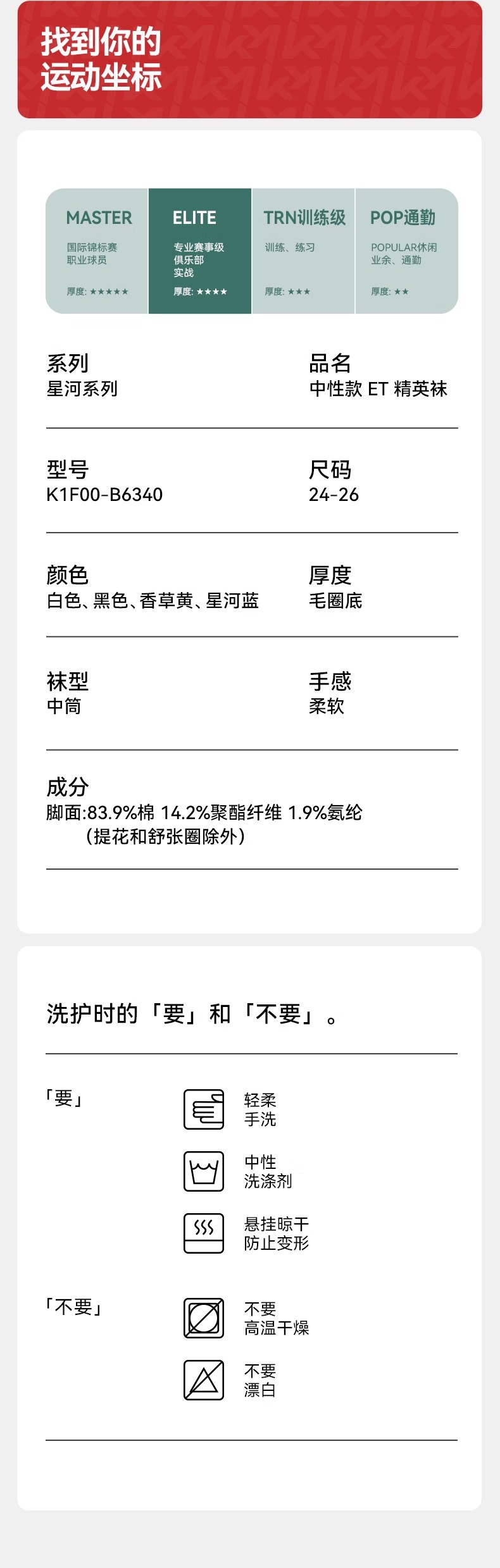 川崎 星河系列 运动中袜 男女同款 K1F00-B6340