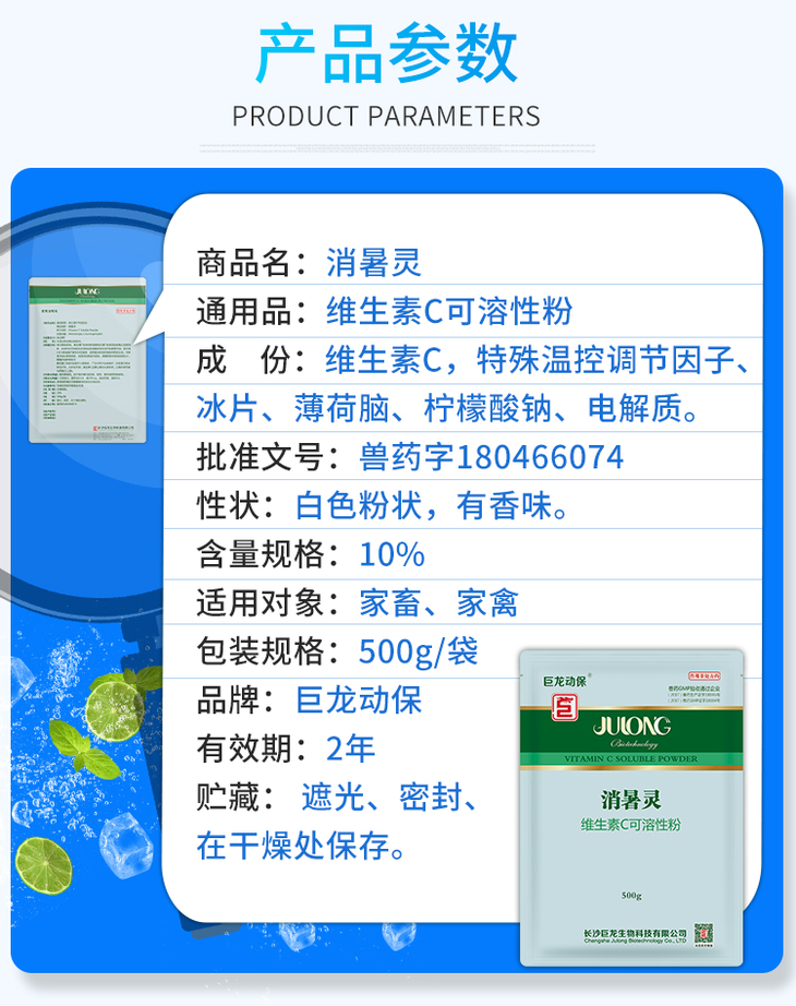 【消暑灵】畜禽用10%维生素C可溶性粉防暑降温热应激粉维生素C缺乏症发热慢性消耗性疾病 500g/袋