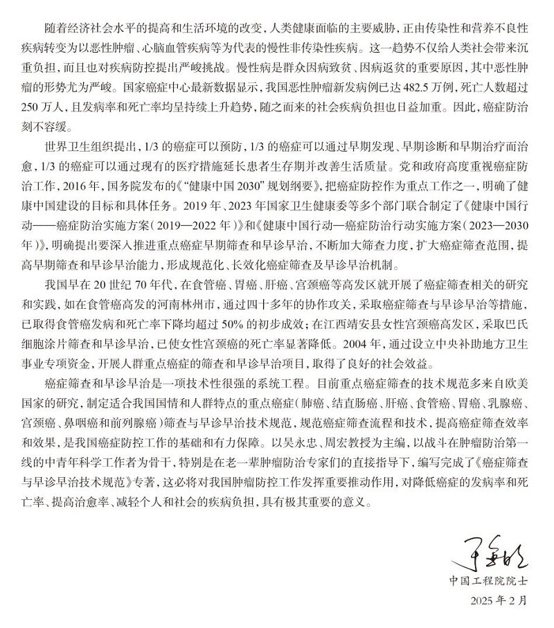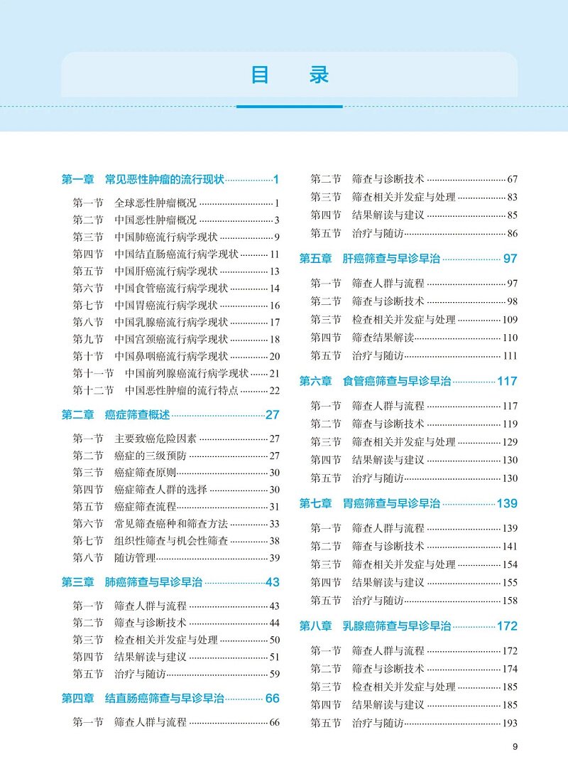 癌症筛查与早诊早治技术规范 吴永忠 周宏主编 系统梳理肺癌胃癌乳腺癌等9大高发癌种的筛查流程与早诊