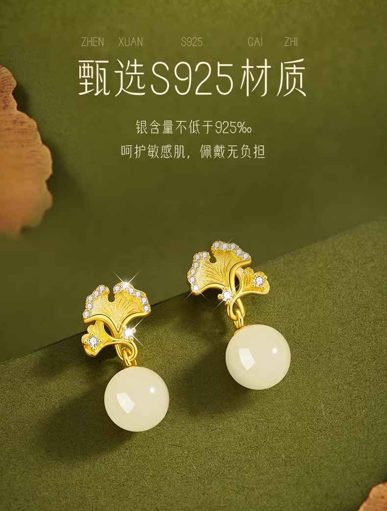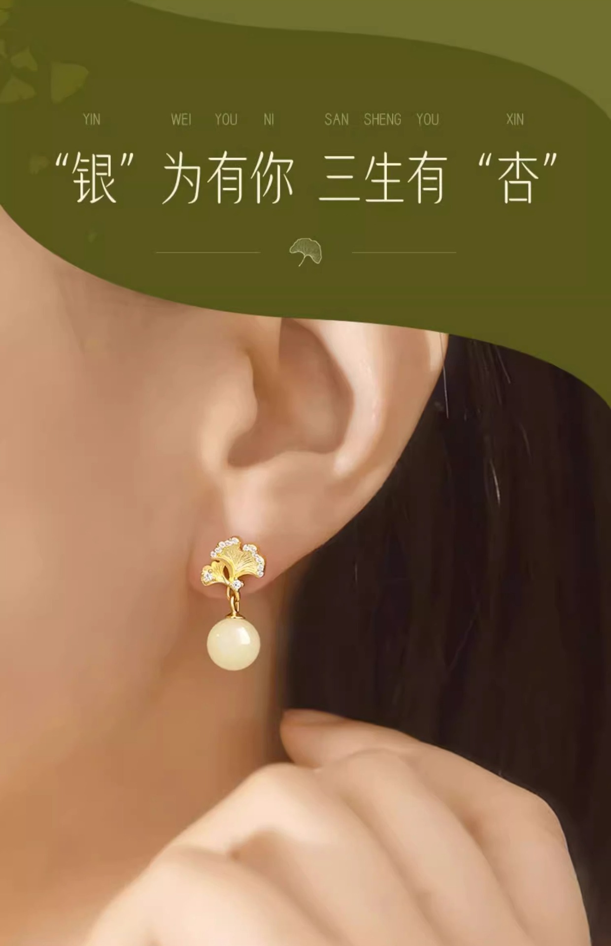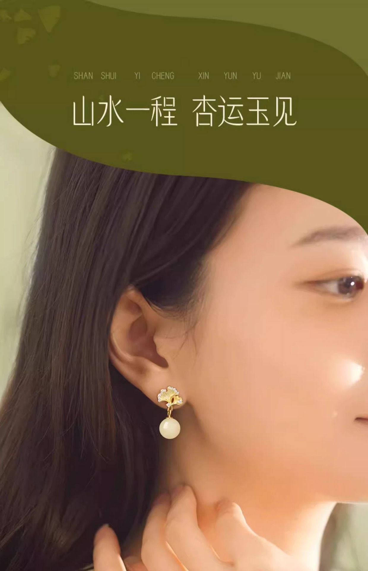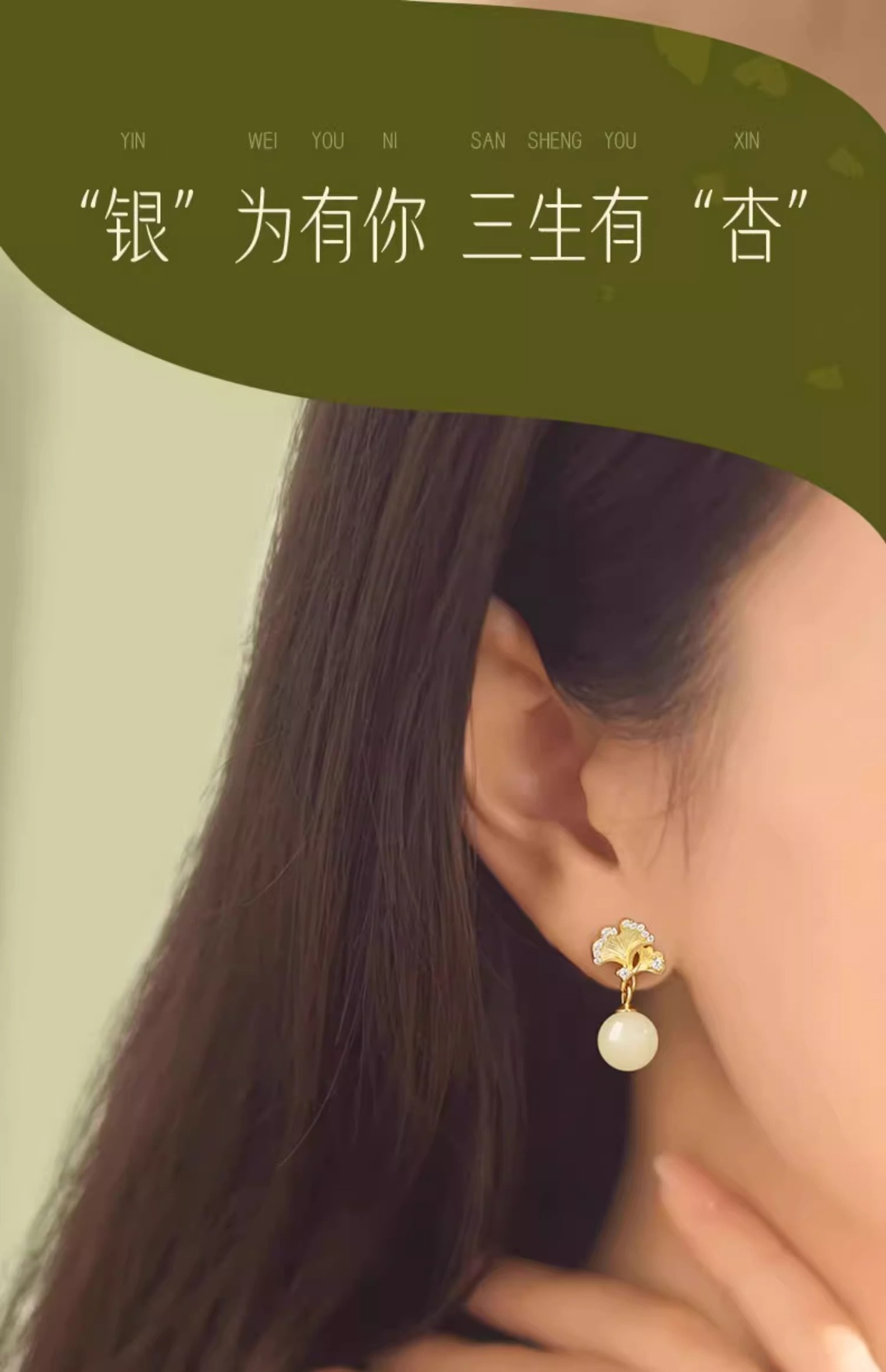 【和其有杏】六鑫珠宝 s925纯银和其有杏和田玉耳环 国潮新中式