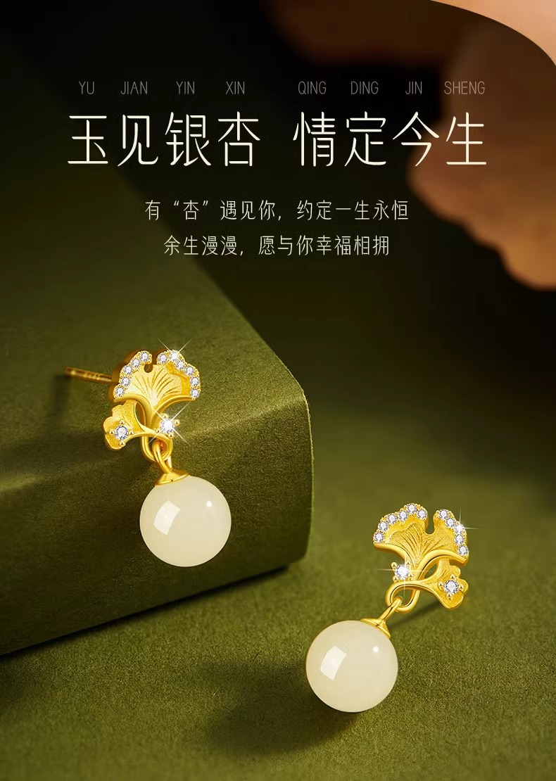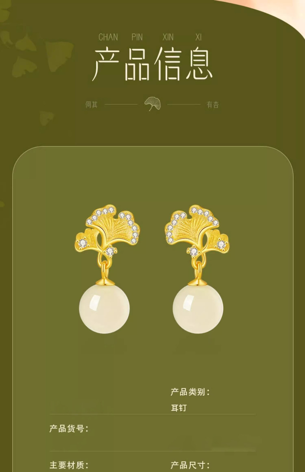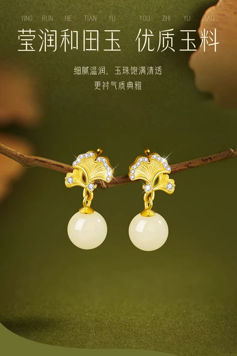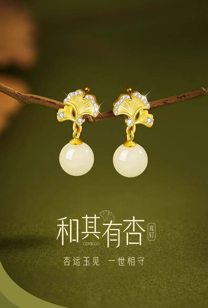 【和其有杏】六鑫珠宝 s925纯银和其有杏和田玉耳环 国潮新中式