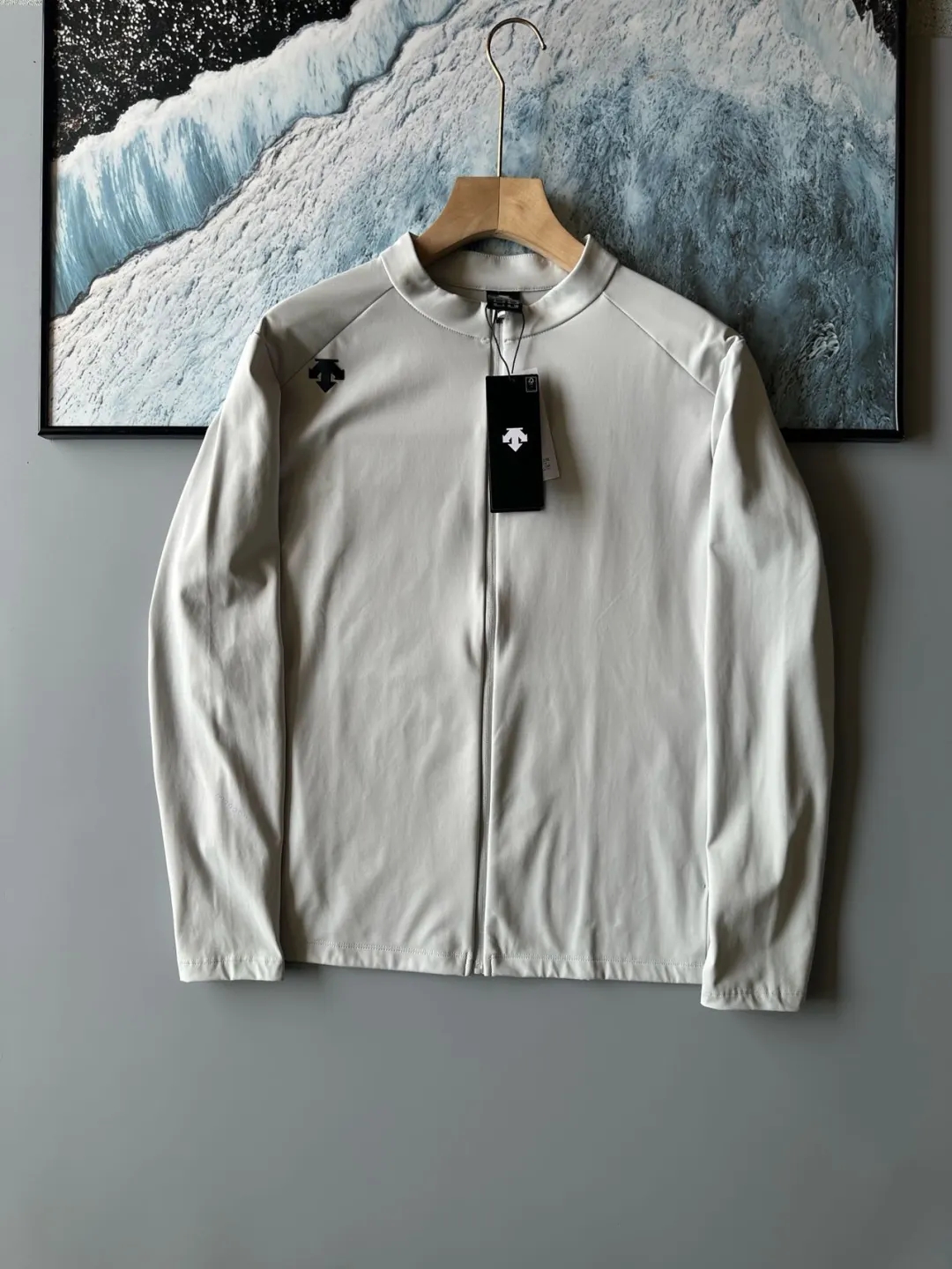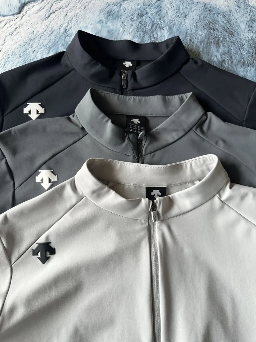经典小立领设计,领后长条字母logo,简约质感。